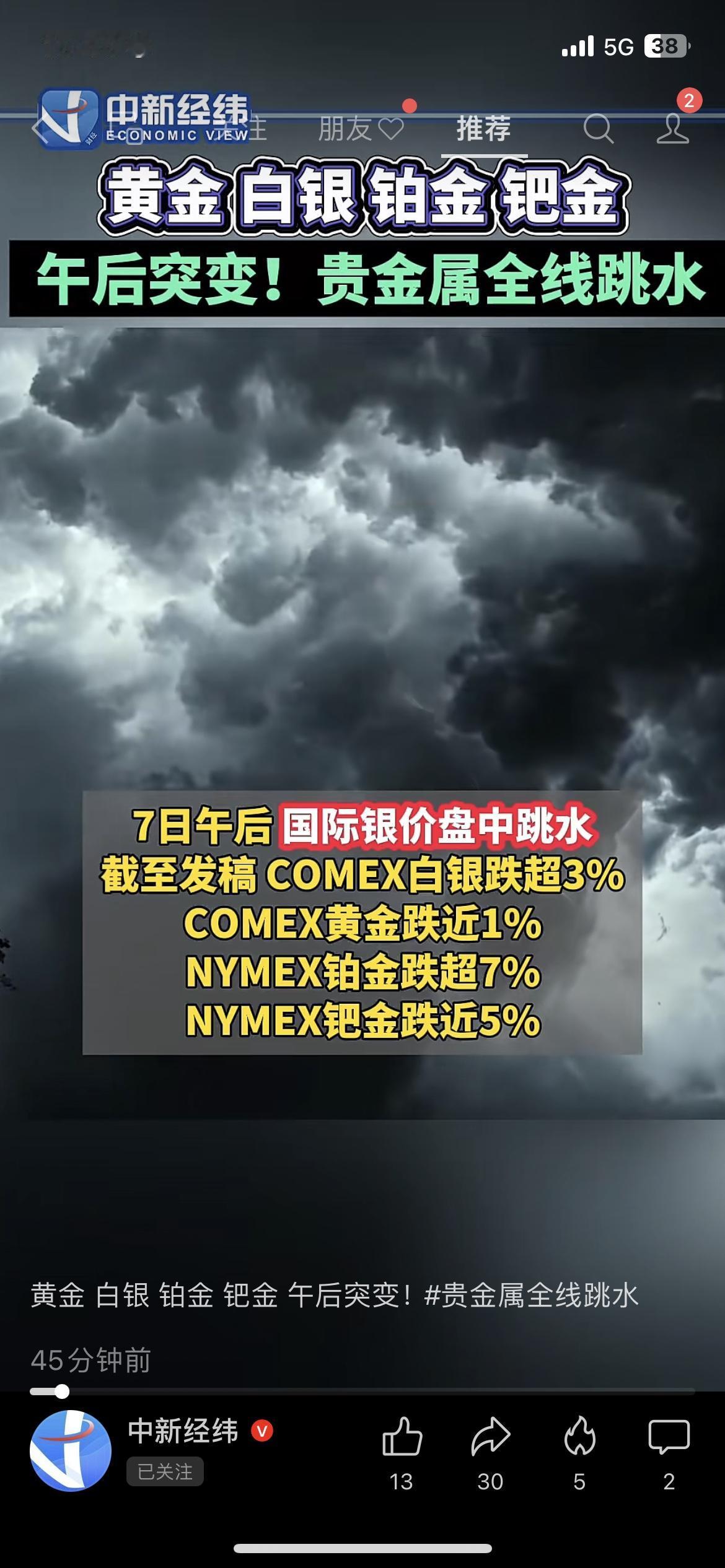 白银跌超3%!贵金属集体跳水,机构却喊白银年涨140% 贵金属投资 小区超市买鸡蛋,王阿姨盯着手机直叹气:“白银基金一天跌3%,5000块亏了150,排骨都换成五花肉了!” 1月7日午后,COMEX白银跌超3%,黄金跌近1%,铂金跌超7%,钯金跌近5%,散户慌着问要不要割肉。 但机构态度截然相反:美国银行给2025年白银定了135—309美元/盎司目标,预计涨幅超140%;摩根士丹利还预测2026年黄金将到4800美元/盎司。 理财师提醒:短期跳水是正常回调,白银还有工业需求支撑,普通投资者别追涨杀跌,仓位别超10%。 你买了贵金属产品吗?这次跳水你是加仓还是持有?白银价格疯涨