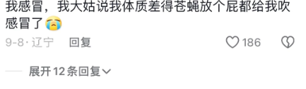 我感冒,我大姑说我体质差得苍蝇放个屁都给我吹感冒了