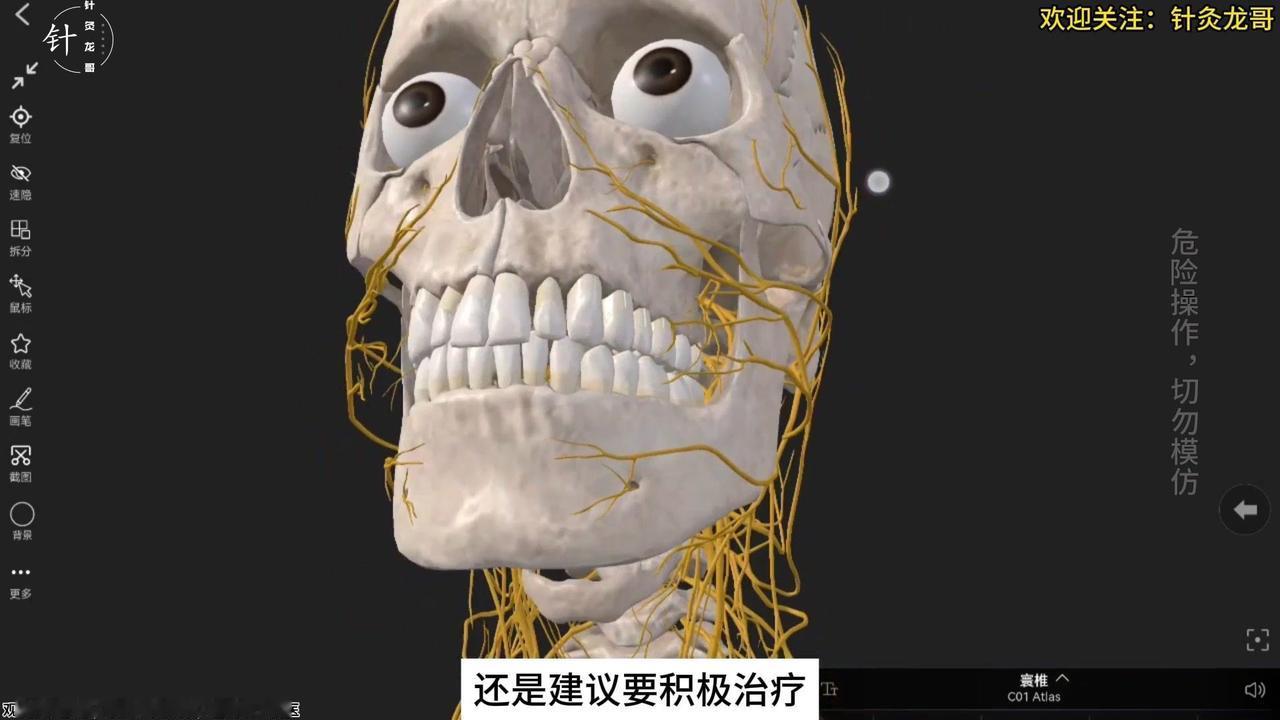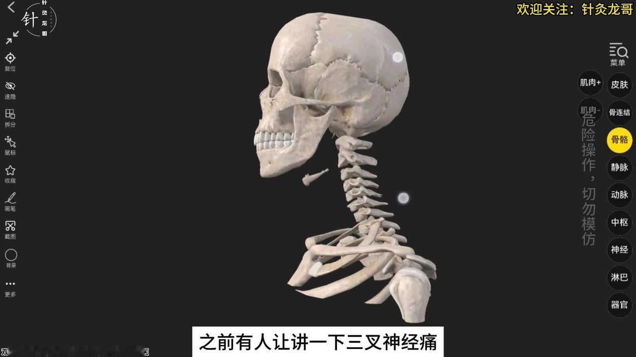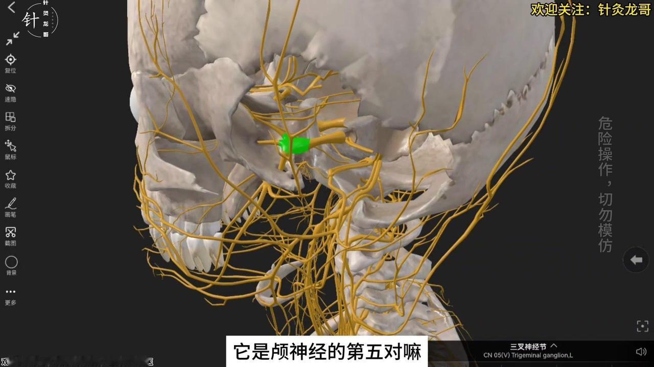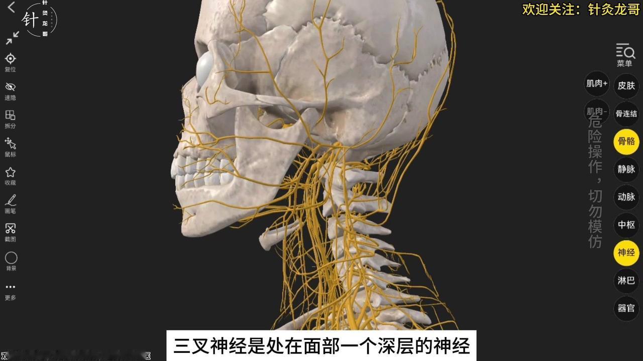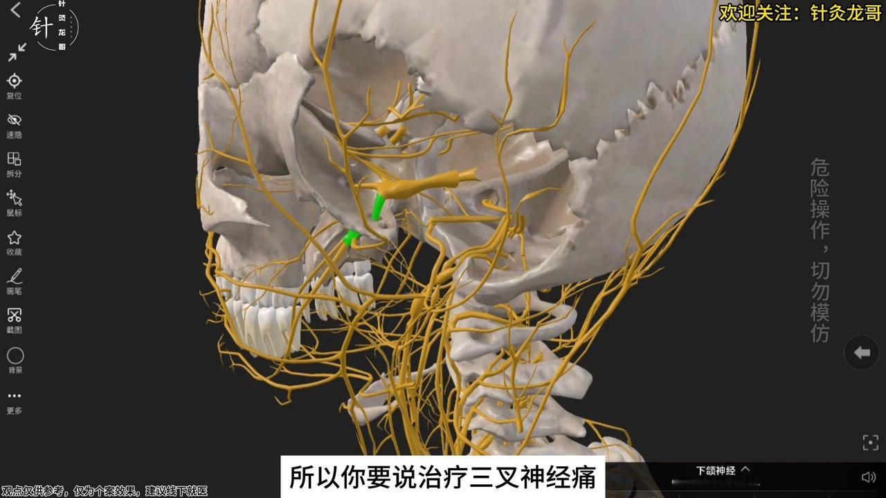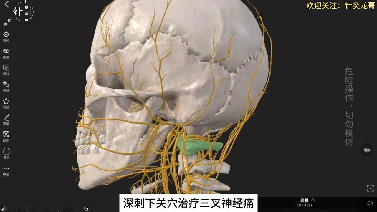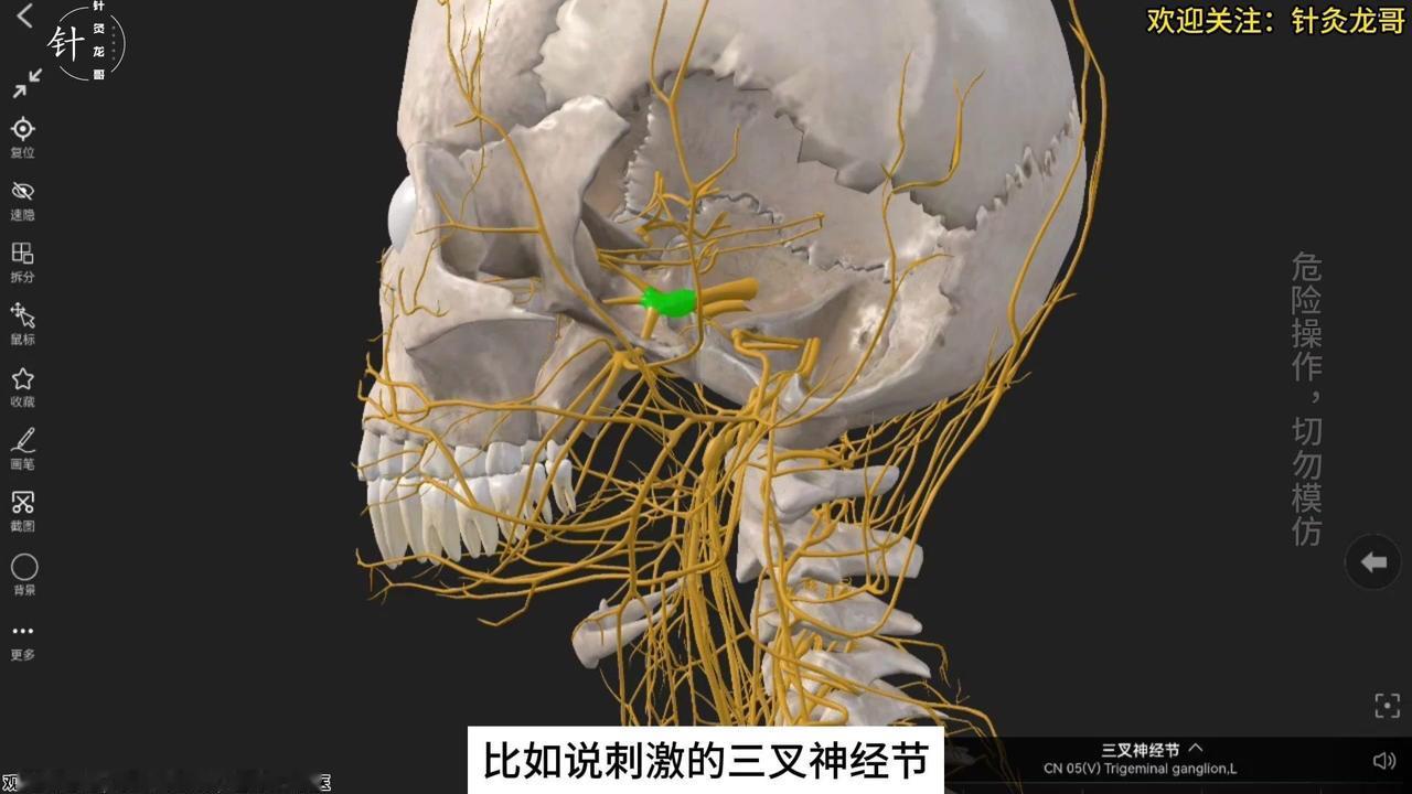 1️⃣三叉神经的解剖位置 三叉神经是面部深层的神经,分为眼神经、上颌神经和下颌神经。它既然是深层,外面是看不见的。三叉神经节是颅神经的第五对,是个混合神经,既是运动神经,又是感觉神经。 2️⃣三叉神经痛的针灸治疗 治疗三叉神经痛,浅层针刺效果一般,除非急性卡压或紧张,可以松解浅中浅层的肌肉。要完全治疗三叉神经痛,需要刺激三叉神经节,但表面扎一些是不可能的。需要深部指刺,三叉神经痛一般是阵发性的,有间歇期,在急性期发作期建议积极治疗。 3️⃣三叉神经痛的非发作期处理 非发作期不太建议过度刺激,因为三叉神经痛的原因一般不明确,脸上有很多叫斑迹点,刺激了就会发作。按压到或轻轻点按都会发作,没必要刻意招惹,等待急性发作时再治疗。 4️⃣中医治疗的辩证论治 中医治疗疾病需要辩证论治,治疗三叉神经痛并不是只用穴位或方法,需要综合辨证。情绪激动、疏肝解郁、行气活血等综合治疗。 5️⃣针灸治疗的具体经验 西医对三叉神经痛在急性期用特效药卡马西平,效果不好时也没办法。中医针灸是很好的手段,选用局部穴位,下关穴是最重要的,深刺用1.5寸的针。前面的视频刺下关穴,稍微斜一下可能也能刺到三叉神经周围。风寒疏风,风热疏风清热,精神紧张、焦虑抑郁的,疏肝解郁行气活血效果都是可以的。用针灸或中药外敷也有特效。 总结:三叉神经痛的治疗需要深刺下关穴,辨证论治,整体治疗,不是只用局部穴位。