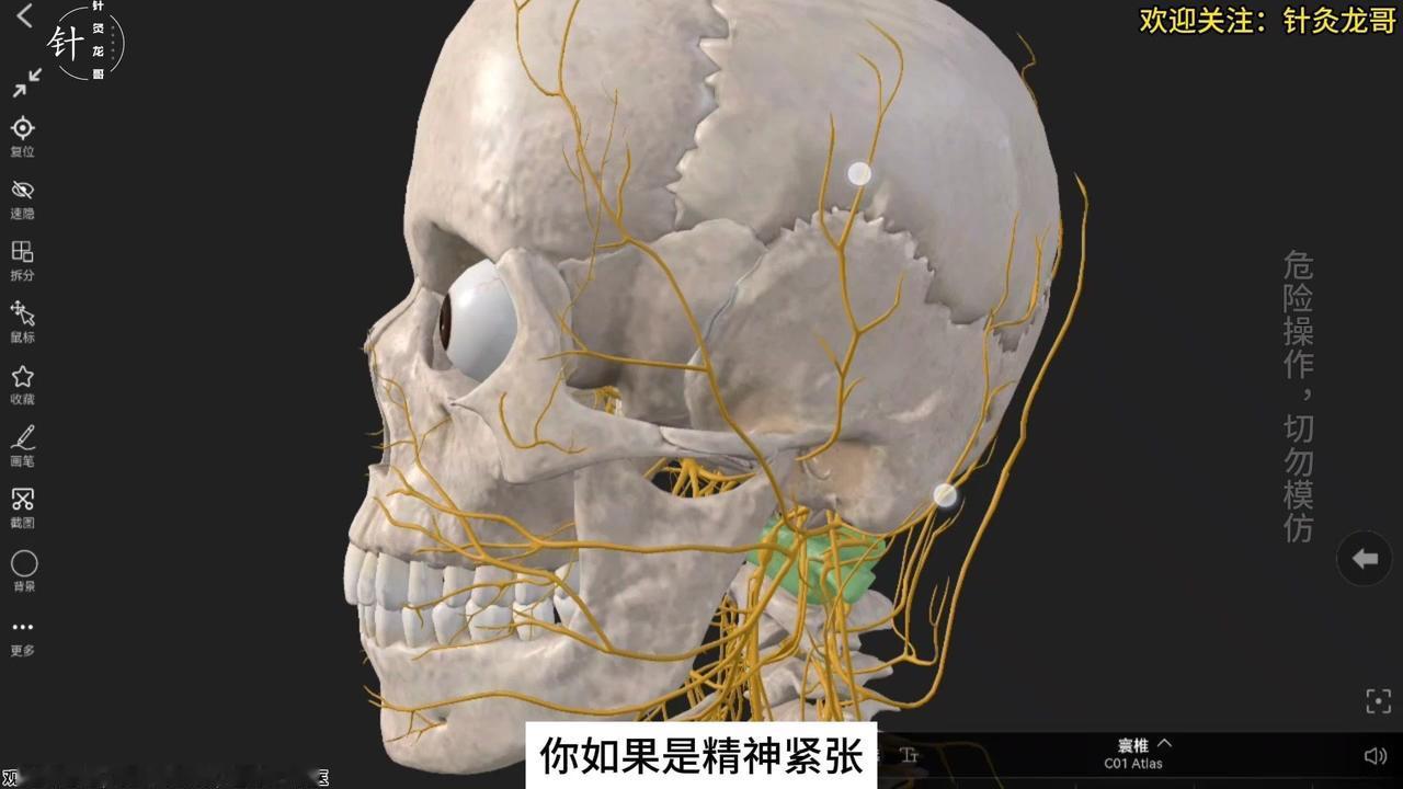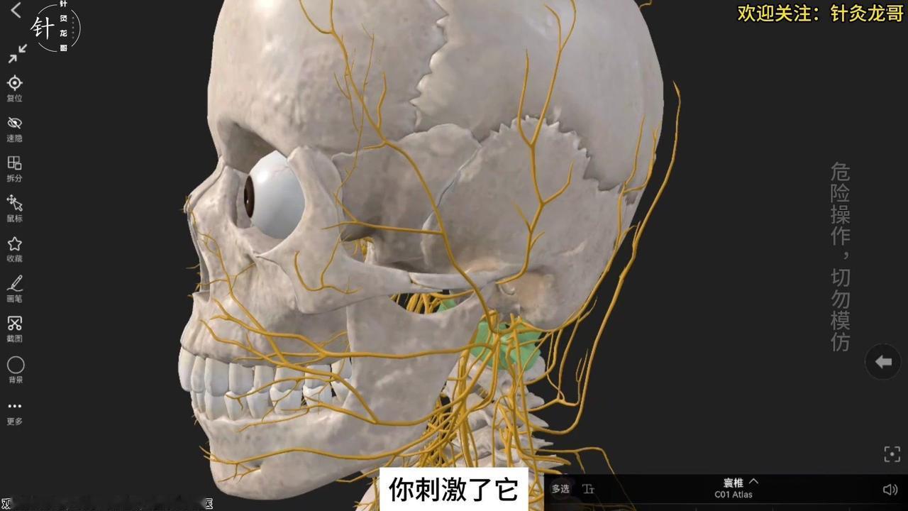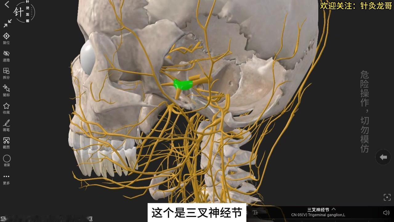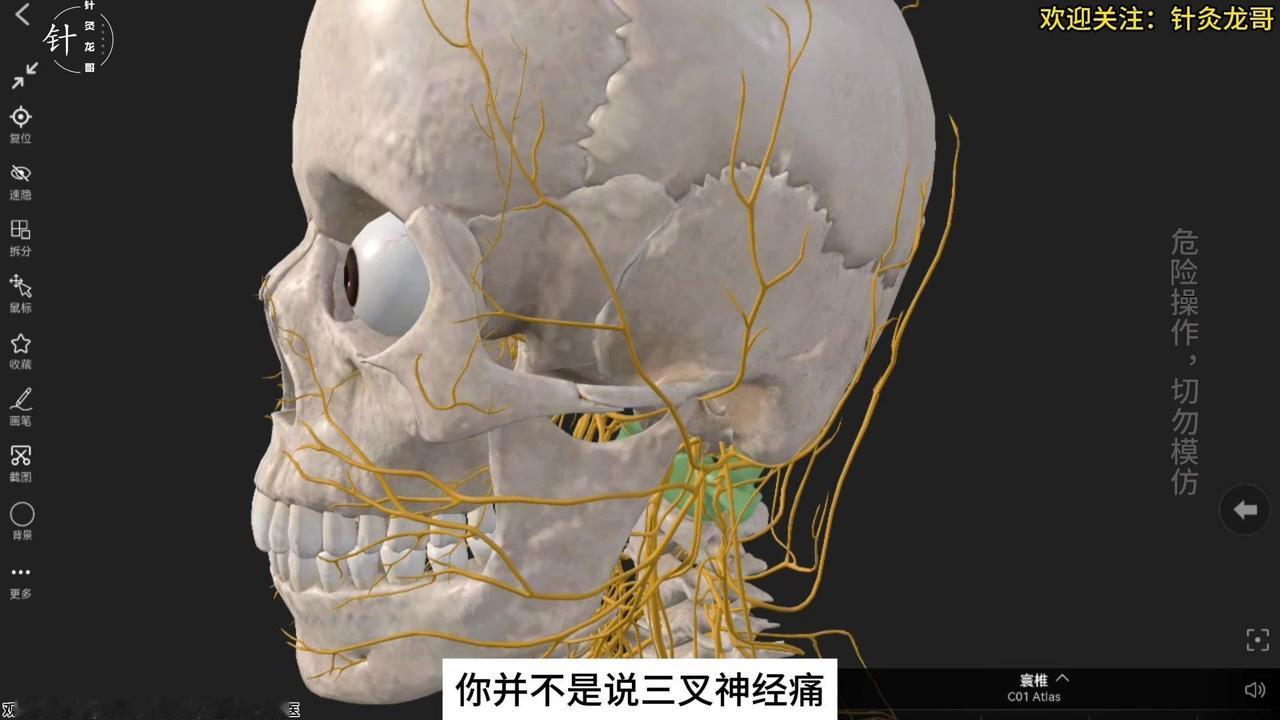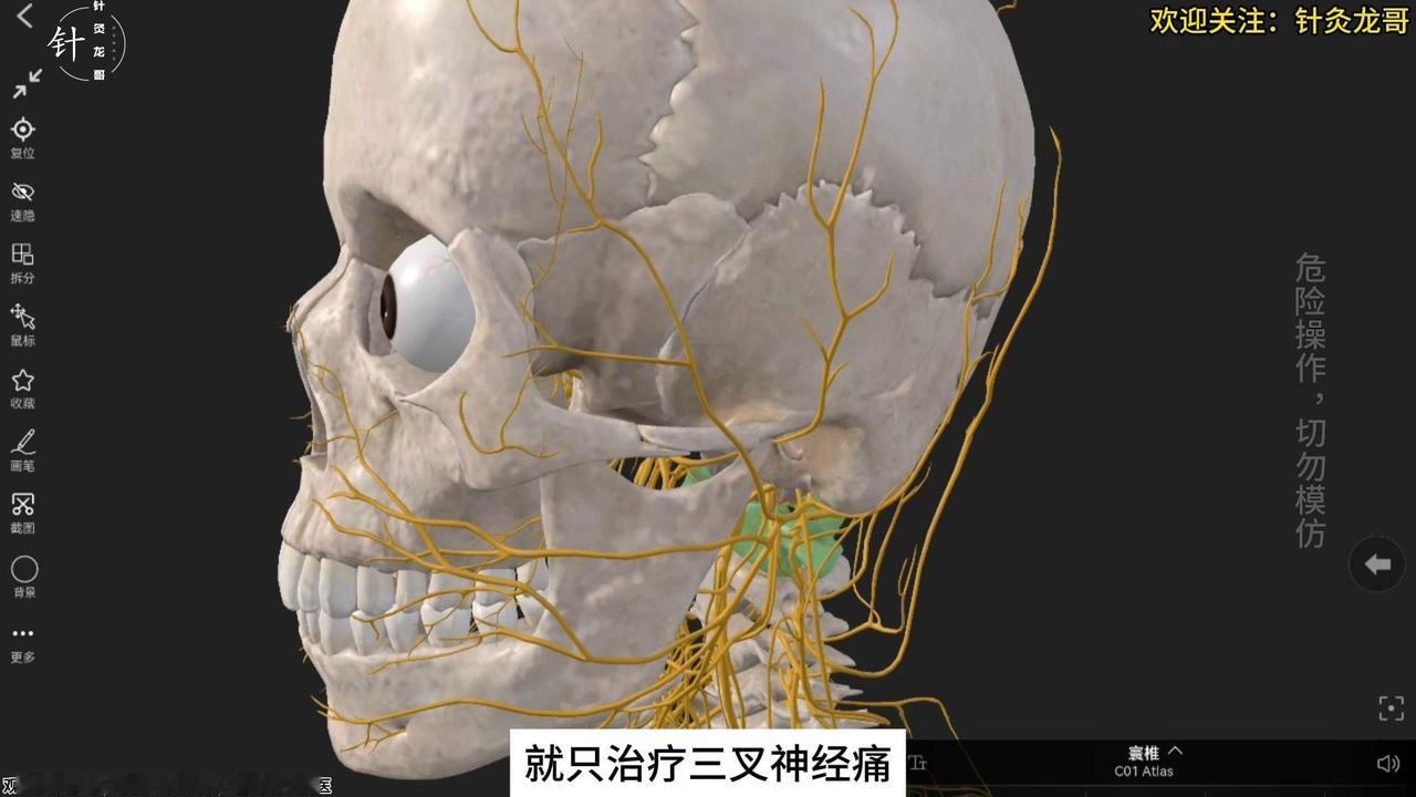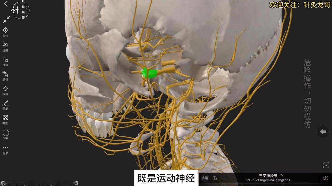 1️⃣三叉神经的解剖位置 三叉神经是面部深层的神经,分为眼神经、上颌神经和下颌神经。它既然是深层,外面是看不见的。三叉神经节是颅神经的第五对,是个混合神经,既是运动神经,又是感觉神经。 2️⃣三叉神经痛的针灸治疗 治疗三叉神经痛,浅层针刺效果一般,除非急性卡压或紧张,可以松解浅中浅层的肌肉。要完全治疗三叉神经痛,需要刺激三叉神经节,但表面扎一些是不可能的。需要深部指刺,三叉神经痛一般是阵发性的,有间歇期,在急性期发作期建议积极治疗。 3️⃣三叉神经痛的非发作期处理 非发作期不太建议过度刺激,因为三叉神经痛的原因一般不明确,脸上有很多叫斑迹点,刺激了就会发作。按压到或轻轻点按都会发作,没必要刻意招惹,等待急性发作时再治疗。 4️⃣中医治疗的辩证论治 中医治疗疾病需要辩证论治,治疗三叉神经痛并不是只用穴位或方法,需要综合辨证。情绪激动、疏肝解郁、行气活血等综合治疗。 5️⃣针灸治疗的具体经验 西医对三叉神经痛在急性期用特效药卡马西平,效果不好时也没办法。中医针灸是很好的手段,选用局部穴位,下关穴是最重要的,深刺用1.5寸的针。前面的视频刺下关穴,稍微斜一下可能也能刺到三叉神经周围。风寒疏风,风热疏风清热,精神紧张、焦虑抑郁的,疏肝解郁行气活血效果都是可以的。用针灸或中药外敷也有特效。 总结:三叉神经痛的治疗需要深刺下关穴,辨证论治,整体治疗,不是只用局部穴位。