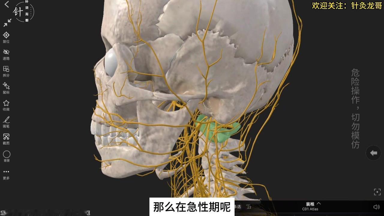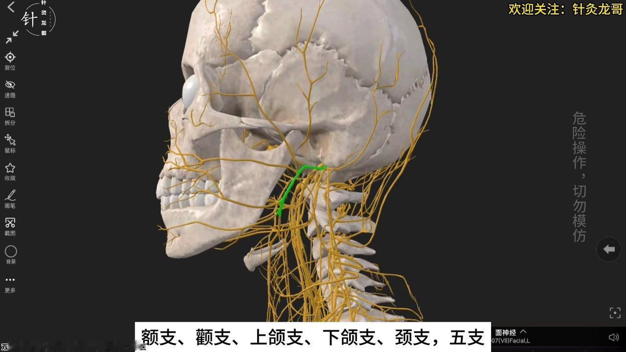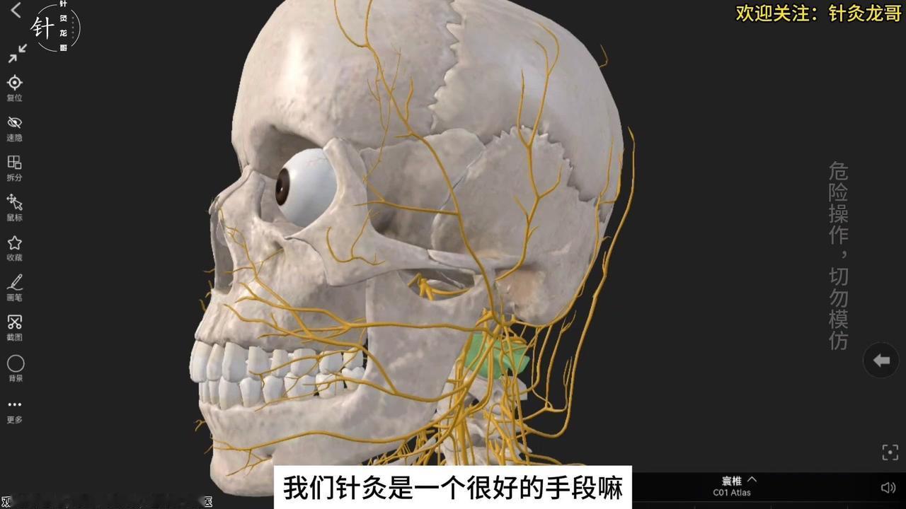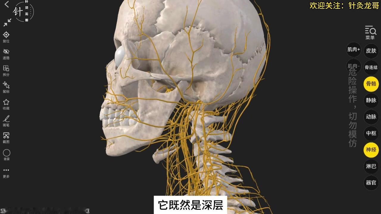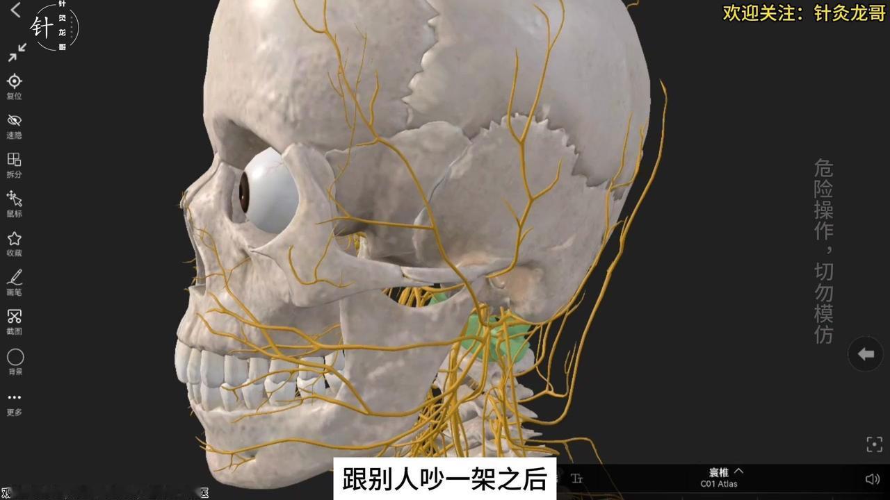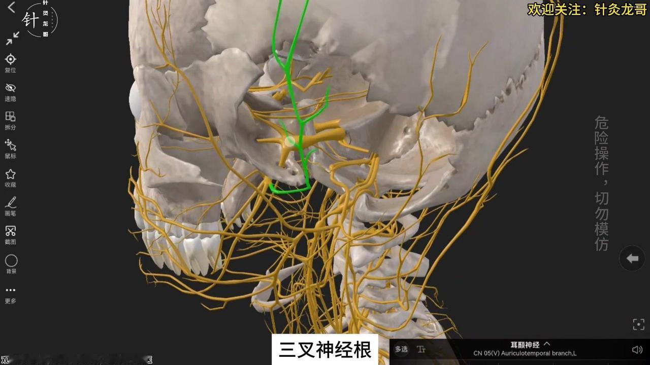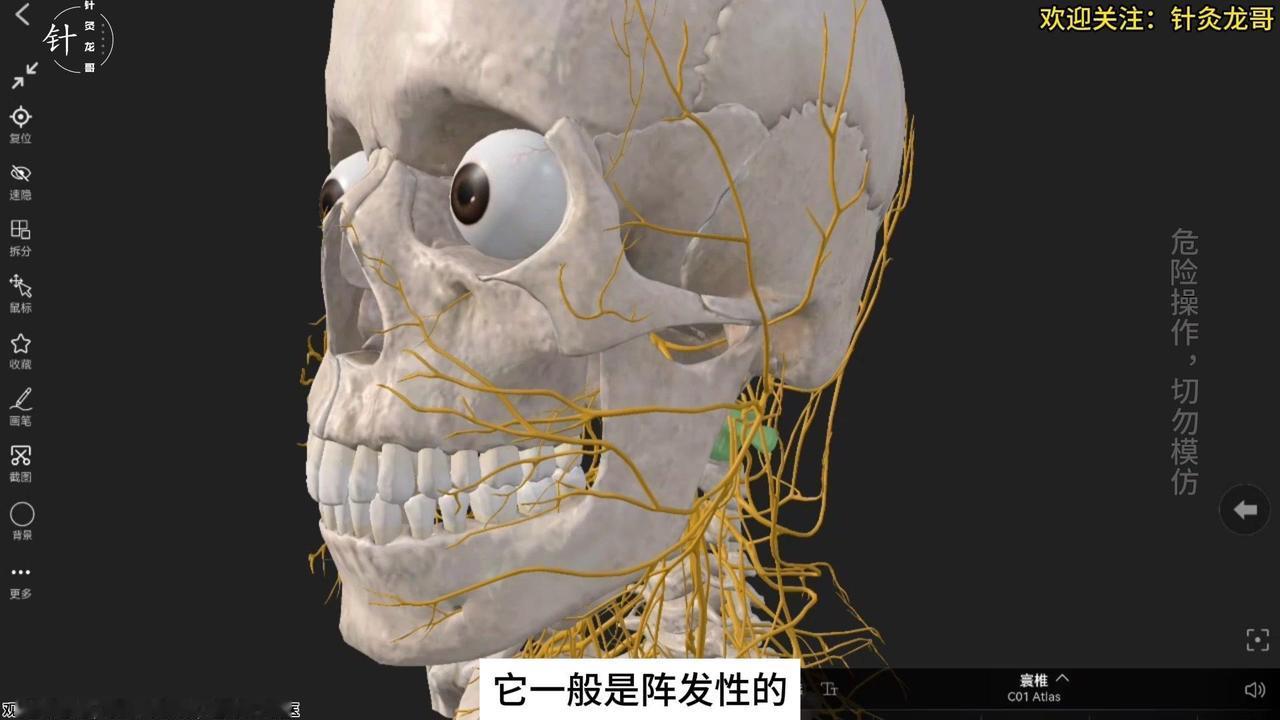 1️⃣三叉神经的解剖位置 三叉神经是面部深层的神经,分为眼神经、上颌神经和下颌神经。它既然是深层,外面是看不见的。三叉神经节是颅神经的第五对,是个混合神经,既是运动神经,又是感觉神经。 2️⃣三叉神经痛的针灸治疗 治疗三叉神经痛,浅层针刺效果一般,除非急性卡压或紧张,可以松解浅中浅层的肌肉。要完全治疗三叉神经痛,需要刺激三叉神经节,但表面扎一些是不可能的。需要深部指刺,三叉神经痛一般是阵发性的,有间歇期,在急性期发作期建议积极治疗。 3️⃣三叉神经痛的非发作期处理 非发作期不太建议过度刺激,因为三叉神经痛的原因一般不明确,脸上有很多叫斑迹点,刺激了就会发作。按压到或轻轻点按都会发作,没必要刻意招惹,等待急性发作时再治疗。 4️⃣中医治疗的辩证论治 中医治疗疾病需要辩证论治,治疗三叉神经痛并不是只用穴位或方法,需要综合辨证。情绪激动、疏肝解郁、行气活血等综合治疗。 5️⃣针灸治疗的具体经验 西医对三叉神经痛在急性期用特效药卡马西平,效果不好时也没办法。中医针灸是很好的手段,选用局部穴位,下关穴是最重要的,深刺用1.5寸的针。前面的视频刺下关穴,稍微斜一下可能也能刺到三叉神经周围。风寒疏风,风热疏风清热,精神紧张、焦虑抑郁的,疏肝解郁行气活血效果都是可以的。用针灸或中药外敷也有特效。 总结:三叉神经痛的治疗需要深刺下关穴,辨证论治,整体治疗,不是只用局部穴位。