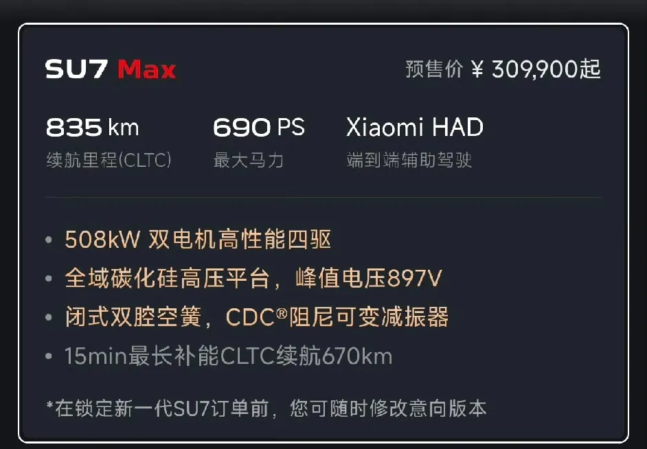 SU7 Max,30.99万