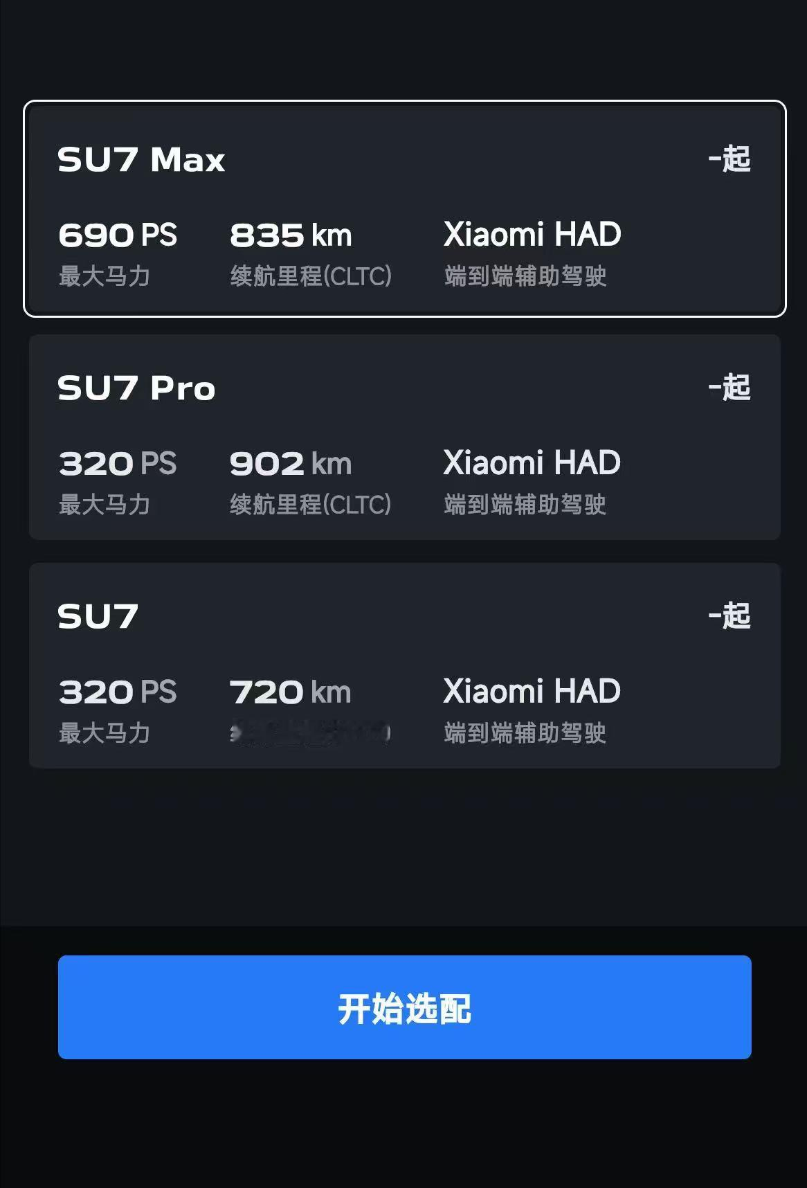 日前小米官方发布最新的海报正式官宣SU7改款即将到来。海报上的新款SU7的车漆官方定名为“卡布里蓝”。预定上市时间为26年4月份。具体的配置暂未公布,不过已经有网友通过小米汽车app查到到新款SU7依旧有普通版、Pro版和Max版三哥配置,三款配置最大马力分别是320匹、320匹和690匹。CLTC续航里程分别是720公里,902公里和835公里,且全系配备端到端辅助驾驶。