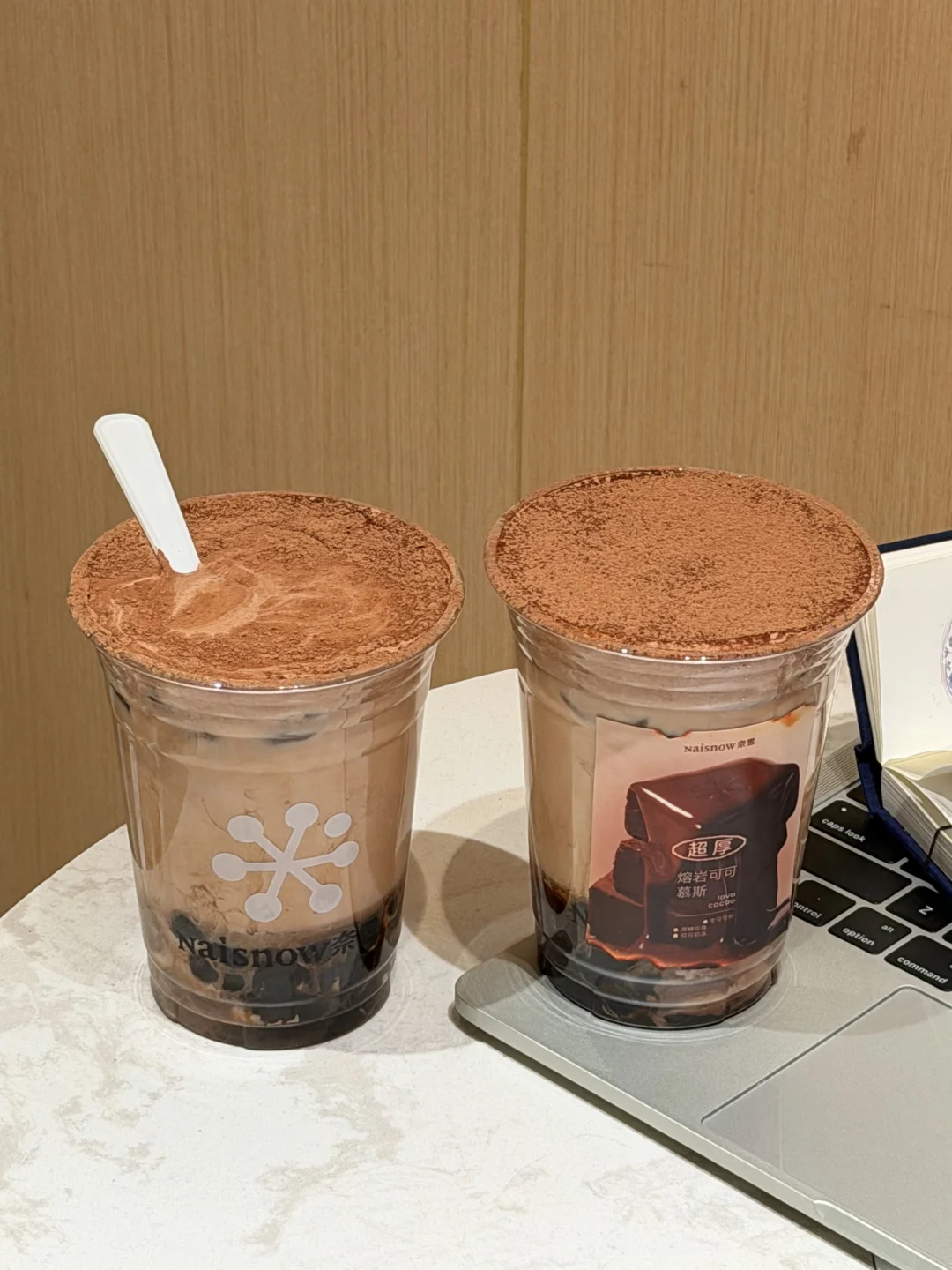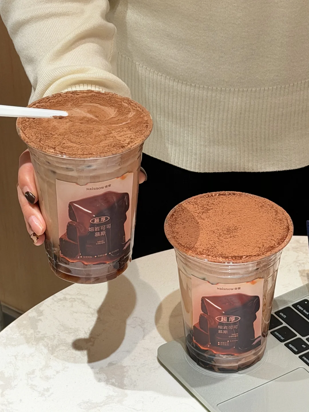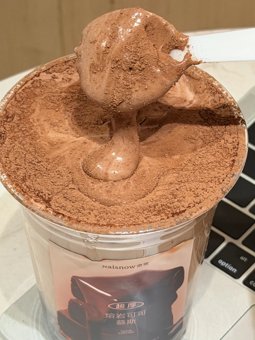 顶部的可可粉慕斯奶盖厚到离谱,质感像流动的绵密动奶!🍫