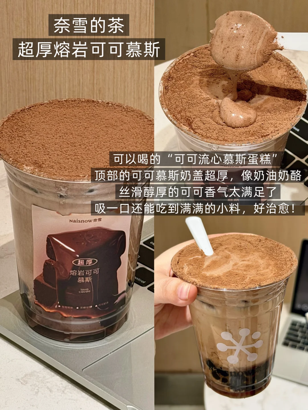 ❤️总结:追求极致厚重口感、像吃甜品一样的满足感,奈雪这杯“液体慕斯蛋糕”无敌!从厚到离谱的奶盖到层次丰富的小料,每一口都是扎实的可可暴击!其他三杯各有特色,宝子们按口味偏好选!!