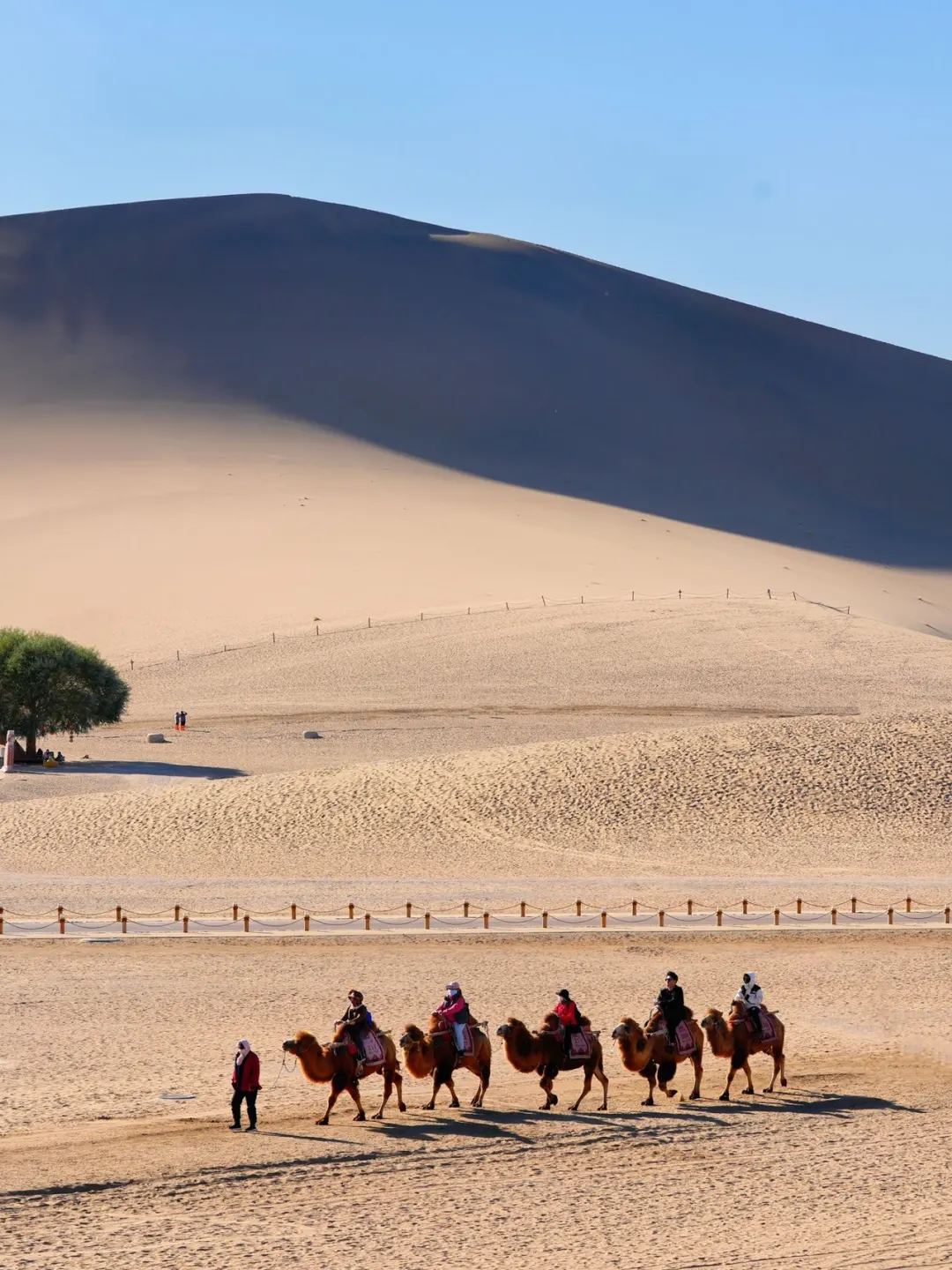 全天参观莫高窟,记得提前预约A类票,能深度领略千年壁画的魅力。傍晚去鸣沙山月牙泉,骑骆驼看沙漠日落,晚上还能欣赏星空下的月牙泉。