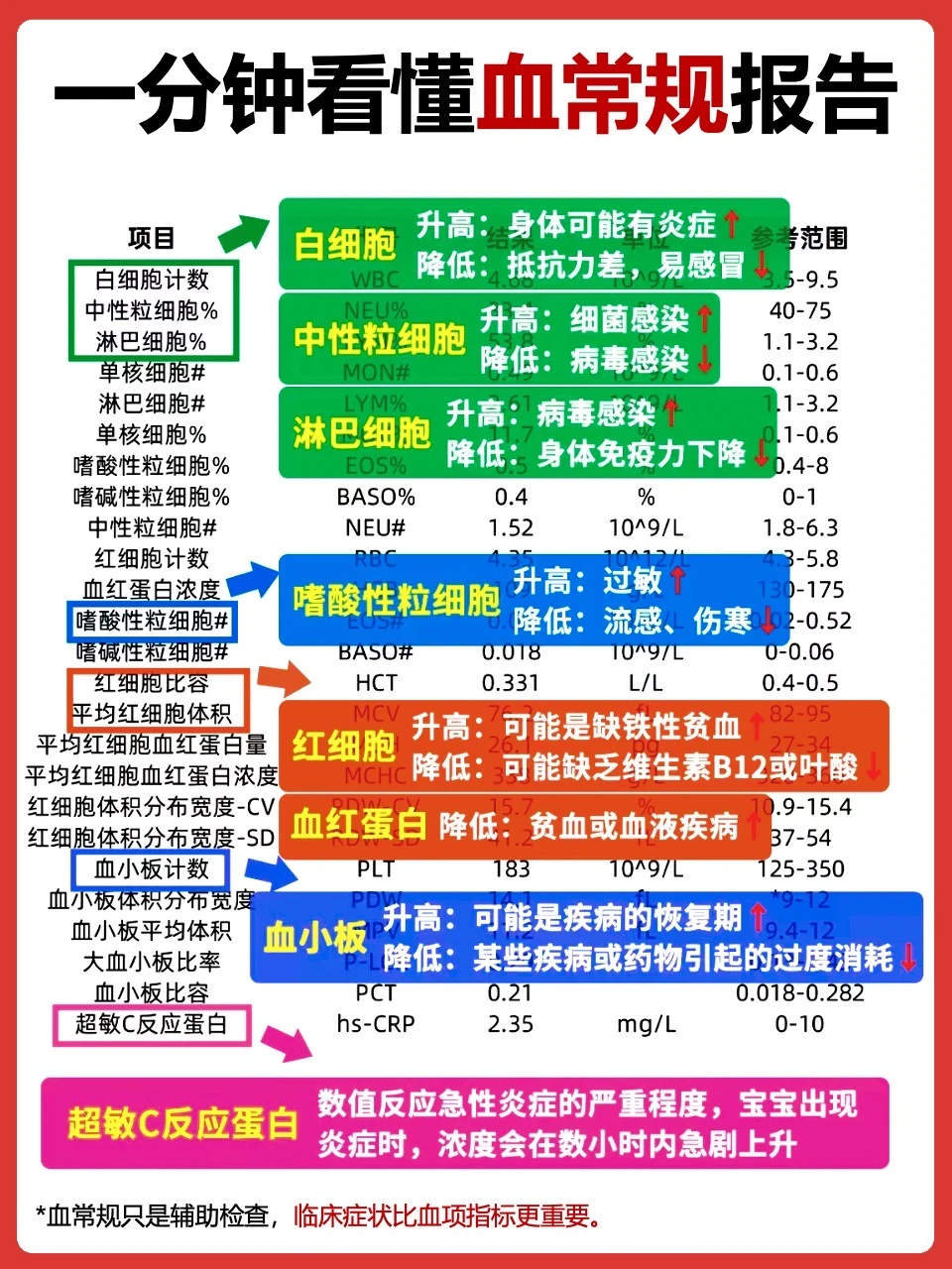 看血常规🩸报告其实没那么难,它能帮助咱们了解孩子的身体状况和生病原因,减少不必要的焦虑,也能早点应对,避免用错药。建议妈妈们码住,以备不时之需,具体见P1-3