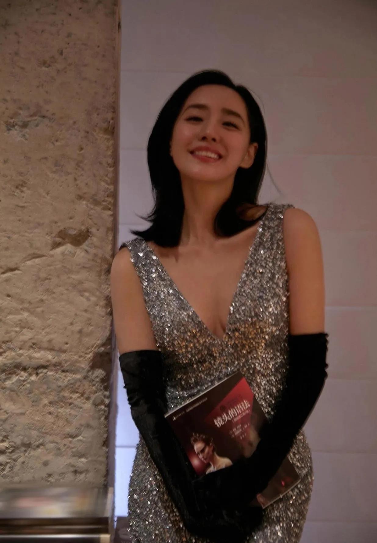王智的银色亮片裙,把优雅和性感穿在了身上! 一袭银色亮片深V长裙,在灯光下闪闪发光,勾勒出她完美的身材曲线。 再配上一双黑色长手套,复古又高级,美得让人挪不开眼。