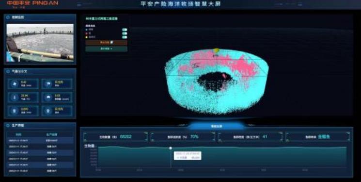 图为平安产险海洋牧场智慧大屏