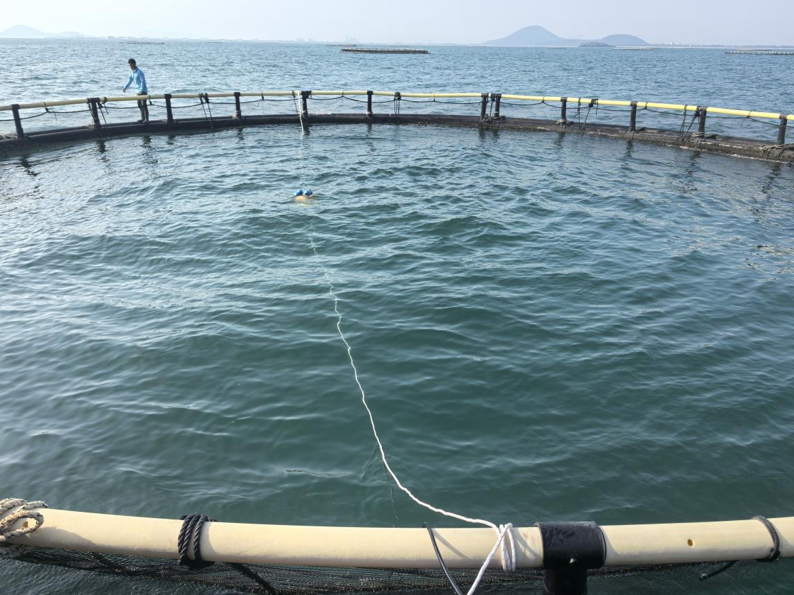 图为深海网箱承保前验标