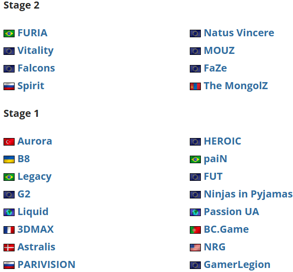 FaZe与TheMongolZ凭借在布达佩斯Major上的出色表现锁定了正赛阶段的席位,而在Major上发挥低迷、排名跌至第9的Aurora则需从第一阶段入围赛开始征战。