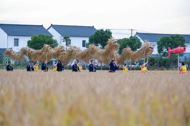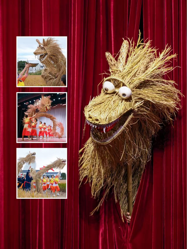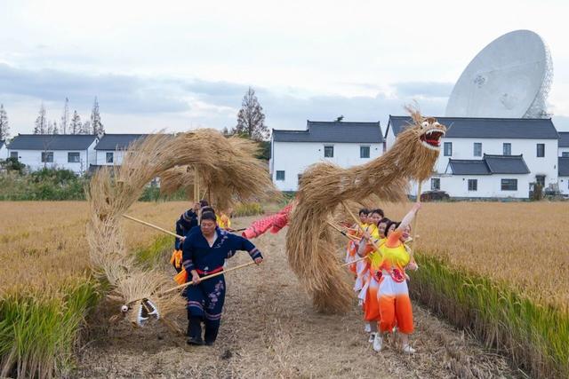 农民都将丰收的金黄色的稻草扎成草龙