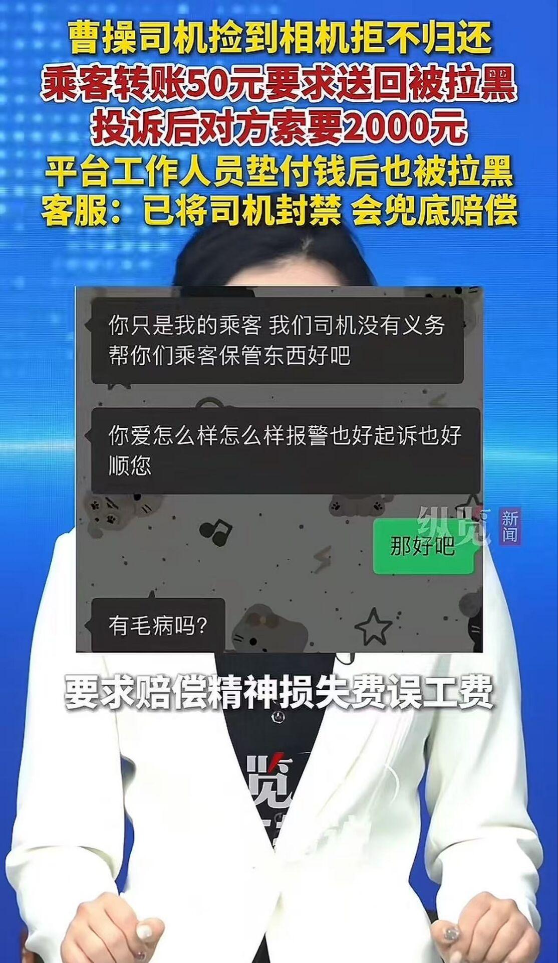 “不懂法太可怕!”北京,女子坐网约车,不慎将价值3000余元的相机遗落在车内。联系上司机,给他转账50块钱,并承诺送回后再支50元路费,可万万没想到司机收下钱后就将女子拉黑,而之后一系列的行为更是炸裂!网友:司机这智商,以为拉黑就没事儿了? 【事情概述】 1月1日,付女士打了一辆曹操出行的网约车。下车时走得急,把相机忘在了后座。等她发现后,赶紧通过平台订单联系司机。 司机倒是爽快承认相机在车上,可接下来的操作却让人大跌眼镜——当付女士提出支付50元路费请他送回,并承诺到付再给50元时,司机收到转账后直接将付女士拉黑了。 付女士傻眼了:钱给了,人没了,相机也没影了。 无奈之下,她只能向平台投诉。没想到,这一投诉反而“激怒”了司机——他主动打来电话,不是道歉,而是狮子大开口: “你投诉我,害我账号被限、信誉分掉光,现在接不了单!你得赔我精神损失、误工费、名誉损失,一共2000块!” 更离谱的是,他还理直气壮地说:“你只是个乘客,我又没义务帮你保管东西!你不赔钱,我就把相机扔了!” 付女士彻底无语,只好让平台介入。平台客服为了尽快解决问题,垫钱又转了一笔给司机,让他赶紧把相机送回来。 结果呢?司机收完第二笔钱,转头就把客服也拉黑了! 平台只能和付女士一起报警,并承诺先行全额赔付付女士的损失,绝不让乘客为司机的无耻行为买单。 消息一出,网友炸锅: “我去看了原帖,民警、司机他领导、司机他老妈全都要他归还相机,他愣是谁的话都不听 就这么与全世界为敌……这个相机到底怎么他了,这么执着!” “这司机是真不知道‘捡到东西不还’可能构成侵占罪吗?还敢要‘精神损失费’?笑死!” “以为拉黑就万事大吉?现在网约车全程录音录像,订单信息全留痕,跑得了和尚跑不了庙!” “这不是捡漏,这是自爆。3000块的相机换一个案底+封号+全网曝光,值吗?” “司机:我把你们都拉黑了,你们就找不到我了,我就不用还相机了。” “这是疯狂的在犯罪边缘试探。本来相机二手价值可能不够立案,这下好了,平台的钱一收,够了…进去待着吧。” 【解析】 这件事最讽刺的地方在于——司机不是“贪小便宜”,而是用一套荒谬的逻辑,把自己送进了法律和舆论的双重火坑。 他以为“乘客落东西,我不还也不犯法”;他以为“拉黑对方,就能神不知鬼不觉吞下相机”; 他甚至以为“被投诉了还能反咬一口,讹2000块赔偿”…… 殊不知,在法治社会,“拾得他人财物拒不归还”已涉嫌《刑法》第270条的侵占罪,数额较大即可立案。 而网约车平台的所有行程、通话、转账记录,都是铁证。 更可悲的是,他本可以轻松赚100块路费,赢得一句感谢,却偏偏选择用贪婪和无知,毁掉自己的职业信誉、法律清白,甚至可能面临刑事追责。 这起事件也给所有人敲响警钟:别把别人的善意当软弱,更别把平台的宽容当漏洞。 在数字时代,每一次“占便宜”的操作,都可能被系统永久记录,成为你人生档案里洗不掉的污点。 最后送这位司机一句话:你拉黑的不是一个人,而是你自己的底线和未来。