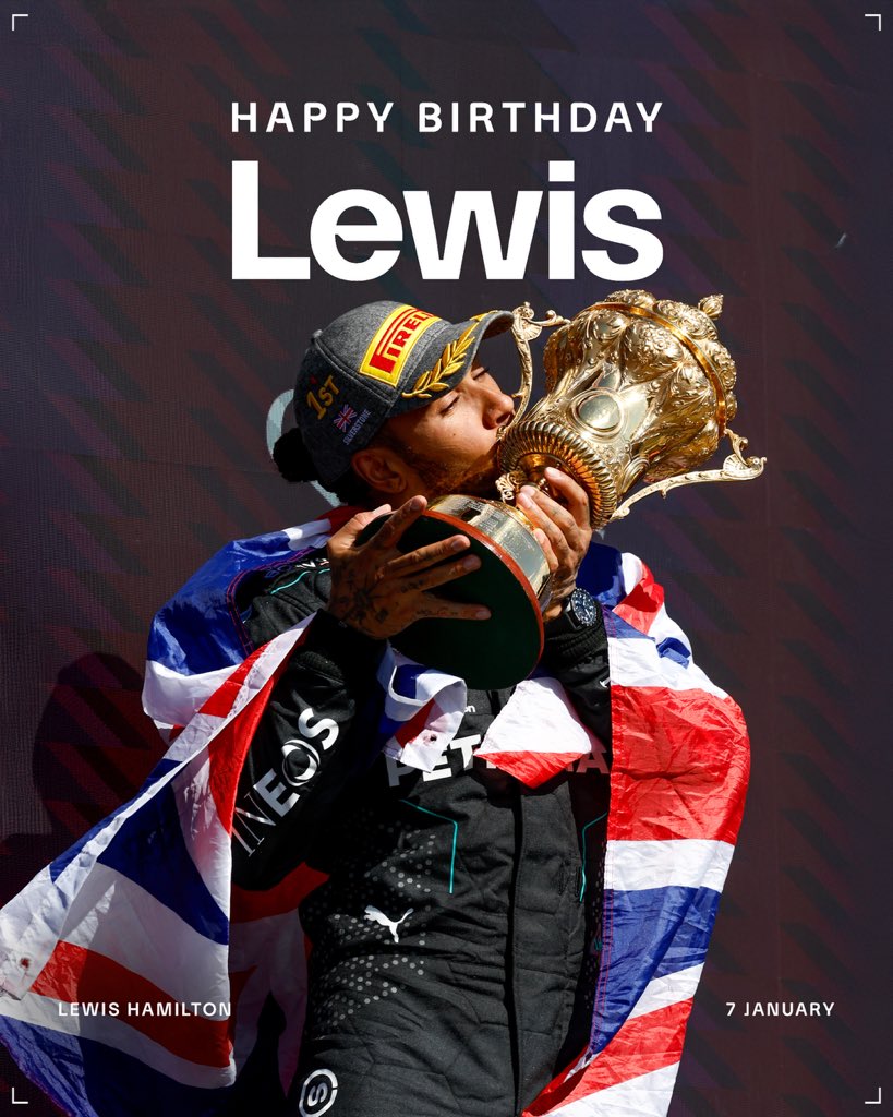 虎扑01月07日讯1月7日是七届F1车手世界冠军刘易斯-汉密尔顿的生日,法拉利、梅赛德斯、F1官方等纷纷为这位英国车手送上了生日祝福。