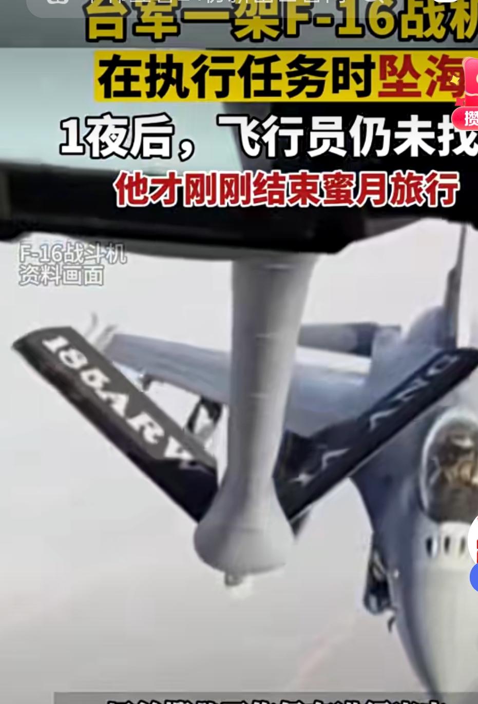台军F-16花莲坠海,飞行员三次呼叫″要跳伞″,1分钟后消失,谁干的? 深夜的花莲外海突然传来一声巨响,瞬间引起了广大网友的关注,都在热议到底怎么回事?原来,1月6日晚,台军一架F-16战机执行夜训时突然坠海,雷达屏幕上的光点短短一分钟就消失无踪。飞行员三次呼叫“要跳伞”,紧接着喊出“高度一直下掉”,这揪心的通话让人心头一紧——到底是谁让战机折翼大海? 据台湾媒体报道,这架失事的F-16AM已经服役近30年,飞行时长快突破4000小时,机体老化、金属疲劳早就找上门,几天前还因任务电脑故障报修过,修完照样“带病上天”。更坑人的是,它压根没装美军早就普及的“自动防撞系统”,夜间穿云飞行时飞行员一迷糊,连个“救命开关”都没有,只能眼睁睁看着战机往下掉。 这并不是孤例,2020到2026年短短六年,台军F-16机队已经摔了7次,4名飞行员再也没能回家。升级后的战机反而故障频发,要么任务电脑突然罢工,要么莫名“鬼转”失控,维修还得送回美国排队,关键部件越修越旧。一边是“以武谋独”硬撑场面,逼着老旧战机高强度训练;一边是安全设备缺位、维护跟不上,这不就是让飞行员拿命赌吗? 说了这么多,还是要说说飞行员截止目前还未找到。希望搜救队能早日找到失联的飞行员,也盼着台当局别再执迷不悟——战机再新、口号再响,也护不住拿生命当赌注的荒唐!