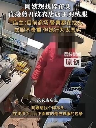 河南漯河一名大妈为了找布料,竟趁店铺无人,狠心剪走了店主的一件新羽绒服!这一幕令人震惊,也引发了网友的热烈讨论。 事情发生在一家裁缝店里,店主刘女士刚刚忙完一件衣服,准备休息时,却发现地板上散落满地的绒毛。细看之下,她惊讶地发现自己的羽绒服被剪开了一个大口子。经过调取监控,刘女士看到了令人愤怒的一幕:一位大妈在店里四处搜寻布料,发现没有找到合适的,便在无人注意时,将自己的衣服比对后,偷偷用剪刀剪下一块布料。 原来,这位大妈衣服破了,想找块布缝补。她以为店里会有合适的布料,没想到竟会“顺手牵羊”剪走一件新羽绒服。刘女士这件衣服还没穿几天,就被毁了,心疼不已。她当即报警,警方也在追查此事。 网友们纷纷表示愤怒:咋还有这样的人,为了缝补自己的坏衣服,竟然在人家新衣服上剪一块,行为太恶劣了!有网友建议,应让大妈赔偿一件新衣,还要公开道歉。有人感叹:“为了几块布,竟然不择手段,真是缺德!”也有人呼吁:在公共场合要尊重他人财物,避免类似事件再次发生。 这起事件再次引发公众对诚信与道德的关注。你怎么看?面对类似情况,我们应如何维护自己的权益?欢迎留言讨论! 你认为道德重要还是金钱重要损人利己