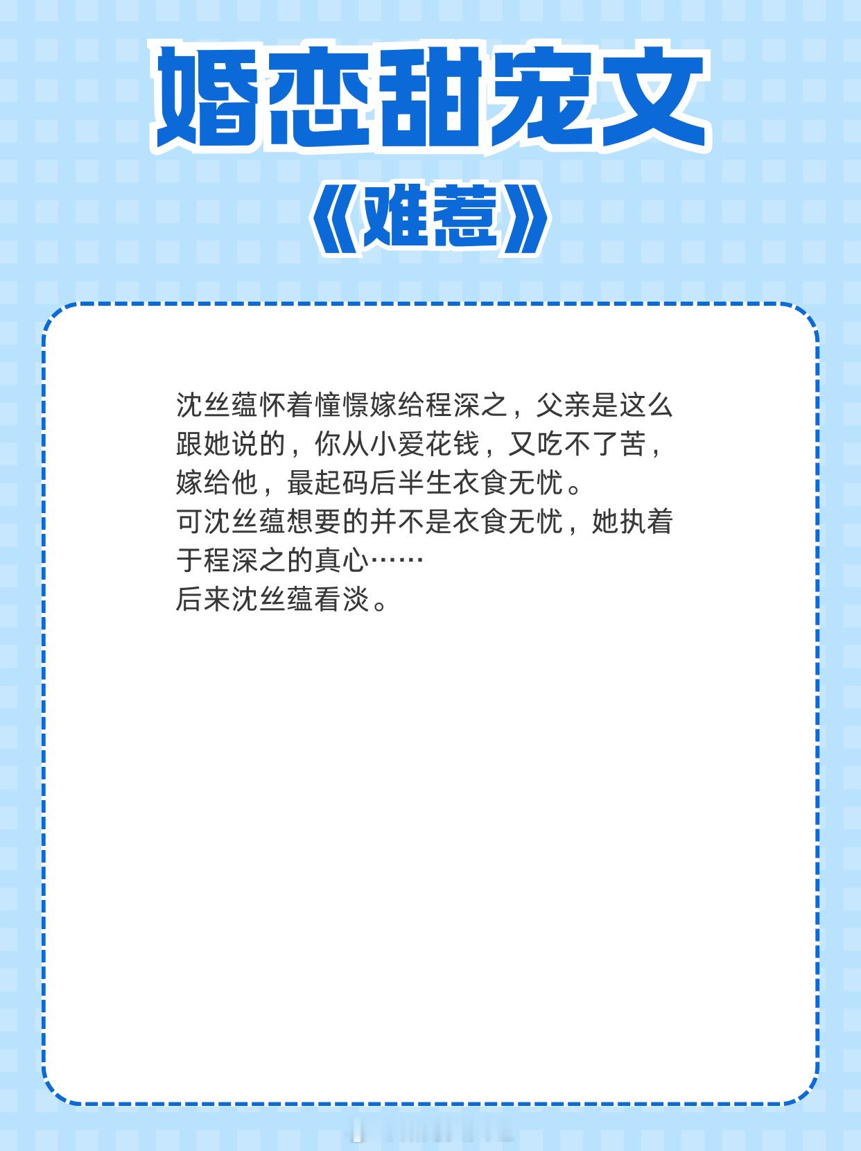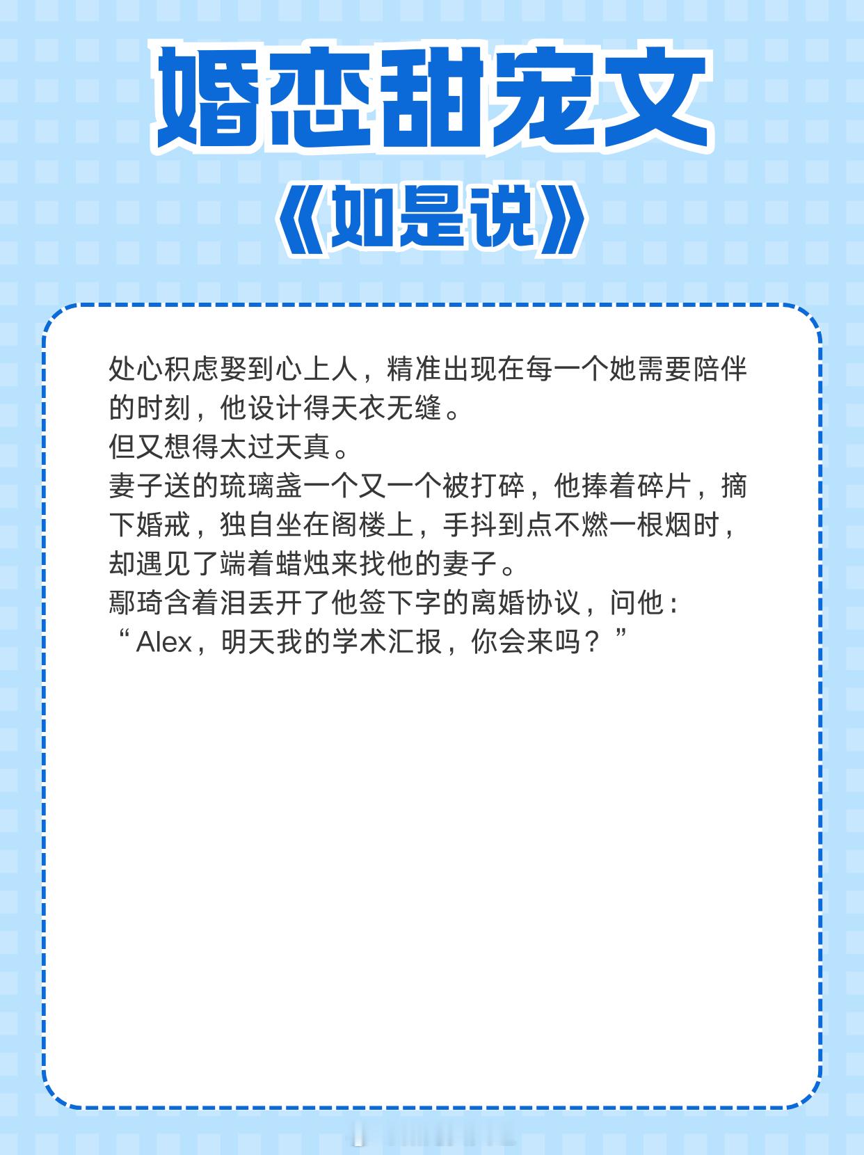 婚恋甜宠文,蓄谋已久,步步为营!她很作他超宠,爱人如养花!小学鸡恋爱,对抗路夫妻!1、《宗妇》 作者:赫连菲菲2、《如是说》 作者:葡萄冰3、《青庐记》 作者:波兰黑加仑4、《绮靡》 作者:初点点5、《回到民国闹离婚》 作者:孟中得意6、《二小》 作者:无声悲鸣7、《几许闲愁》 作者:何双成8、《光明世界》 作者:大姑娘浪9、《难惹》 作者:非木非石这小说写在我心趴上了 让我吹爆的宝藏小说
