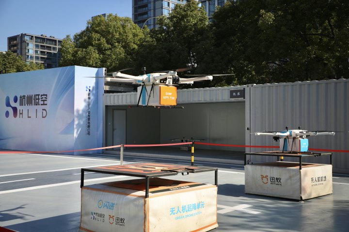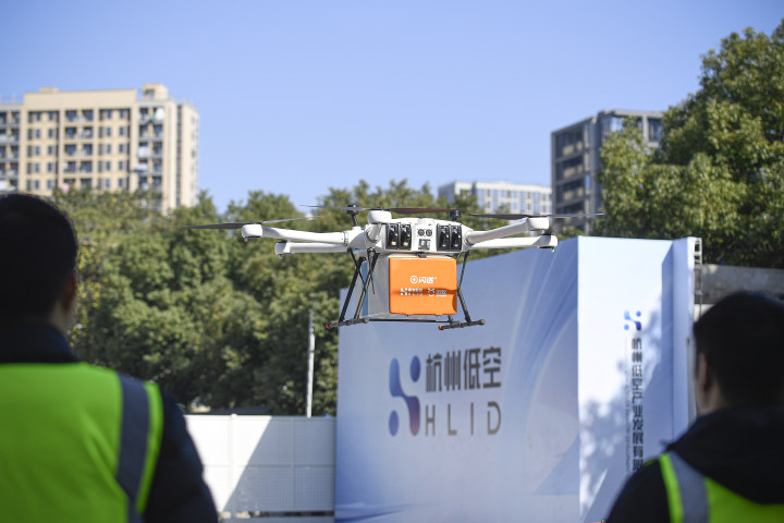 今年7月,杭州第一条常态化无人机即时配送航线开通,连接申花和武林区块,空中飞行仅需8分钟。12月,随着吴山广场起降点的加入,三点连成一个小型网络,市民使用闪送服务,当收发件地址位于起降点周边1.5公里时,都可以体验到“从天而降”的配送。