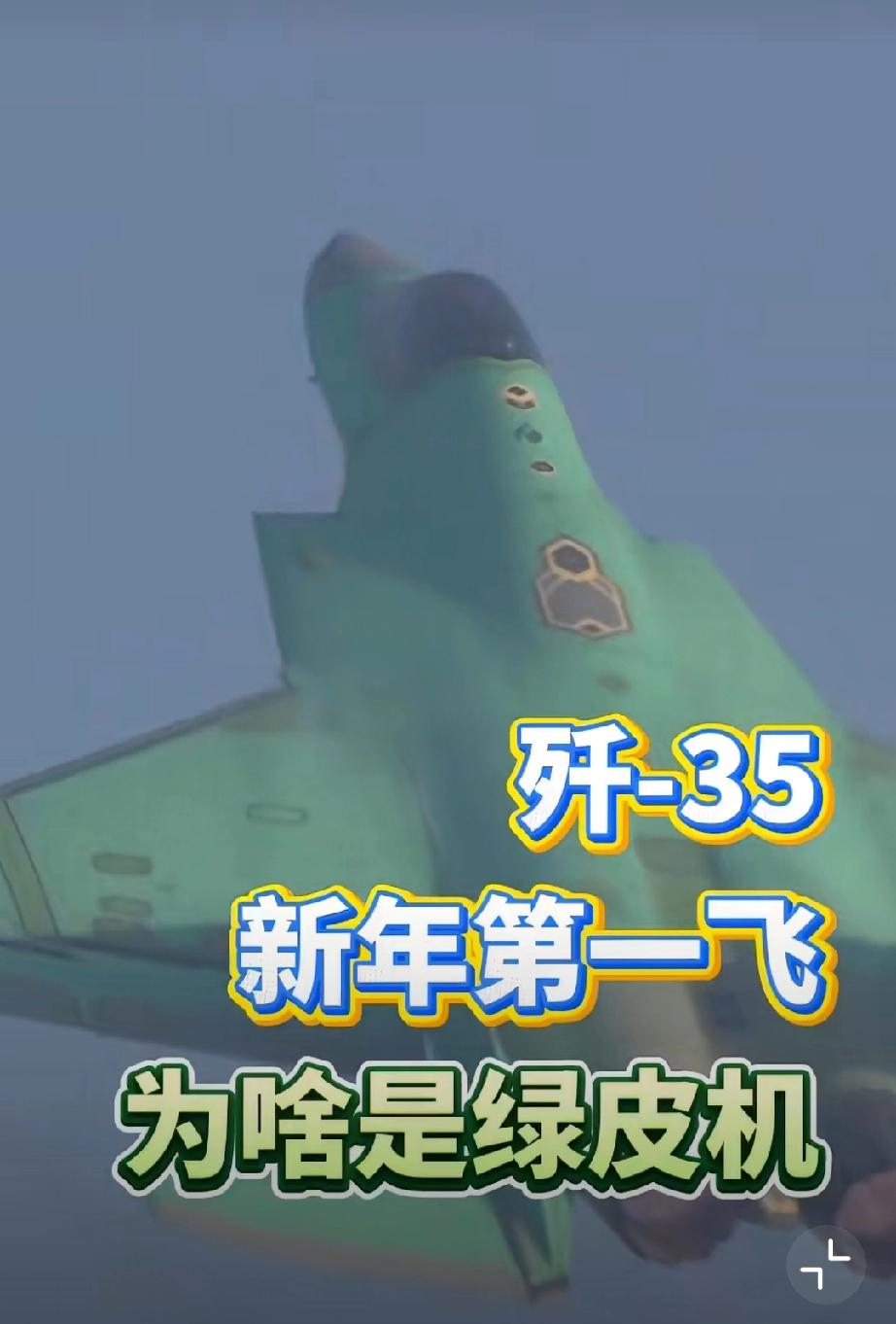 新年首飞!歼35绿皮机震撼公开 一身绿皮,暗藏玄机…… 歼-35隐身舰载机新年首飞刷屏了!1月6日沈阳亮相,绿底漆机身+高清原声画面,24小时播放破千万! 别猜这绿皮是啥“新皮肤”!其实是试飞专属“保护衣”。 既能防铝合金机身生锈,又能和后续涂层形成反差,方便检测机身形变。 更关键的是,机身大量复合材料本身就是深绿色,省工又实用! 等量产服役,就会换上隐身灰战衣,到时候颜值战力双在线!咱的舰载机越来越硬核了!