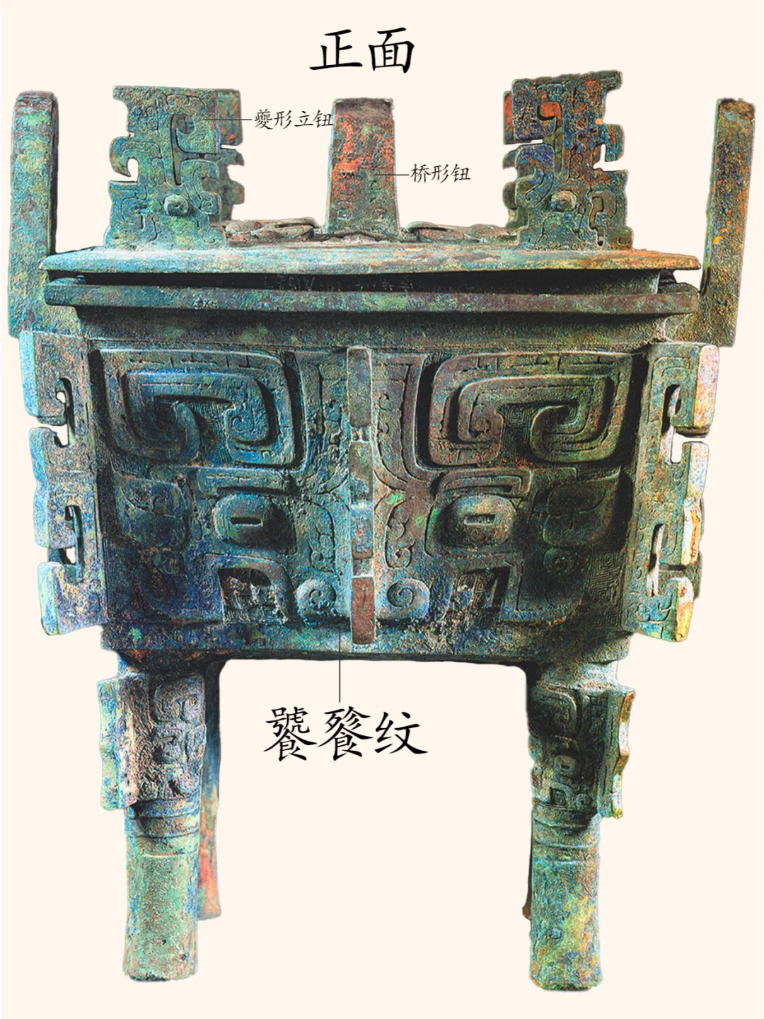 方鼎,主要流行于商代前期到西周中期,西周晚期已非常罕见。商代中晚期最大型青铜器多为方鼎,西周早期时最大型青铜器已为圆鼎。 西周早期的方鼎多为中小型鼎,今介绍羊子山M4出土的饕餮纹方鼎是考古发掘出土已知的最大型西周方鼎。且同出两件。 器物名称: 饕餮纹方鼎 (博物馆展牌名称:噩仲方鼎)。 时代: 西周早期 收藏单位: 随州市博物馆 器物规格: 通高35.1厘米,口长经25、口短径19.8厘米,耳高10.2厘米,足高13.3厘米 ,腹深14.7厘米,重9850克。 出土地点: 2007年湖北省随州市安居镇羊子山M4出土。 器物编号: 噩侯方鼎(M4:4),该M同型鼎共出两件,另一件编号(M4:16)。大小基本一致,纹饰、造型一样。 备注:羊子山M4还未发表正式的考古简报(或报告)已公布的资料名称并不一致,暂时按照《湖北随州羊子山M4出土青铜器整理简报》的名称及编号。 器物介绍: 器形、纹饰: 整体分为器身、器盖两部分,平盖,器子口,双附立耳,折沿方唇,深腹平底,四柱足。器盖四角加铸片状的倒立夔龙,盖中心有一宽桥形钮。身腹四角及前后正中各置一条大扉棱。 纹饰: 盖面饰二组相对的大饕餮纹,以云雷纹衬地,盖钮面饰阴线蝉纹,盖夔形片状立纽两面饰阴线夔龙纹(凸四)。腹部四面各饰一组大饕餮纹,以中部扉棱为界鼻。四足根部各饰一兽首。 铭文: 盖内、器内底各铸二行六字,内容相同铭文:噩中(仲)乍(作)作宝樽彝。 作者:九芒考古 。 参考资料: 1、《随州出土文物精粹》 随州市博物馆 文物出版社 2009年。 2、《中国出土青铜器全集 湖北卷(上)》 李伯谦 科学出版社 2018年。 3、《中国国家博物馆馆刊》2024年第一期 湖北随州羊子山M4出土青铜器整理简报 随州市博物馆 湖北省文物考古研究院 武汉大学历史学院。 4、上海博物馆举办展览同名图录《汉淮传奇—噩国青铜器精粹》 上海书画出版社 2022年。 青铜器 博物馆 考古 值得一去的博物馆 藏品 文物