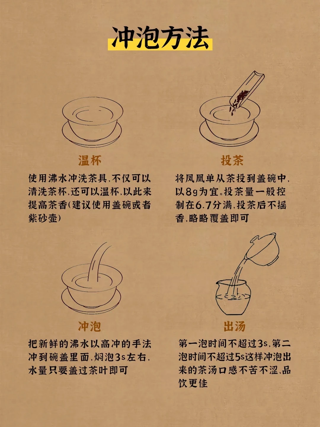 100℃沸水激发茶香,紫砂壶或盖碗冲泡,首泡5秒出汤。搭配潮汕甜点“朥饼”,解腻又提香~