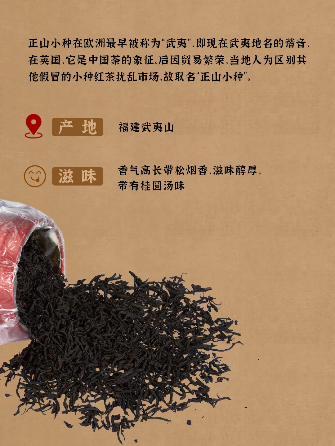 正山小种 = 红茶界的 “活化石”!品其松烟桂圆韵,感受穿越400年的醇厚甘甜。认准“正山”产地+传统熏焙,方是正宗!