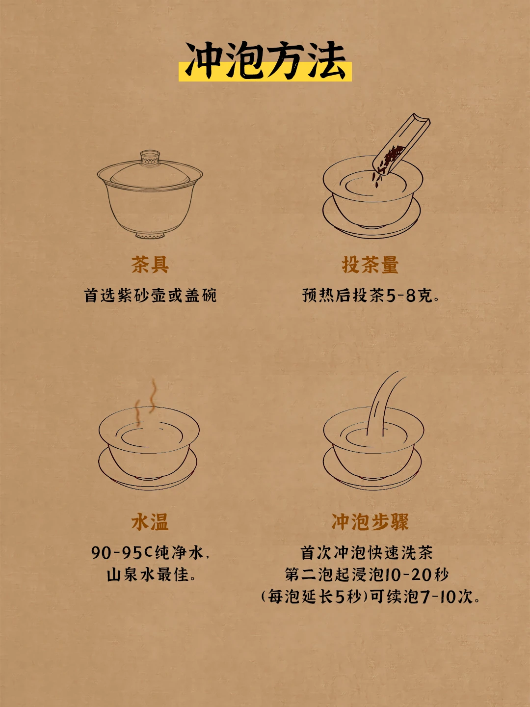 建议用100℃沸水,快进快出,前3泡5-10秒出汤。