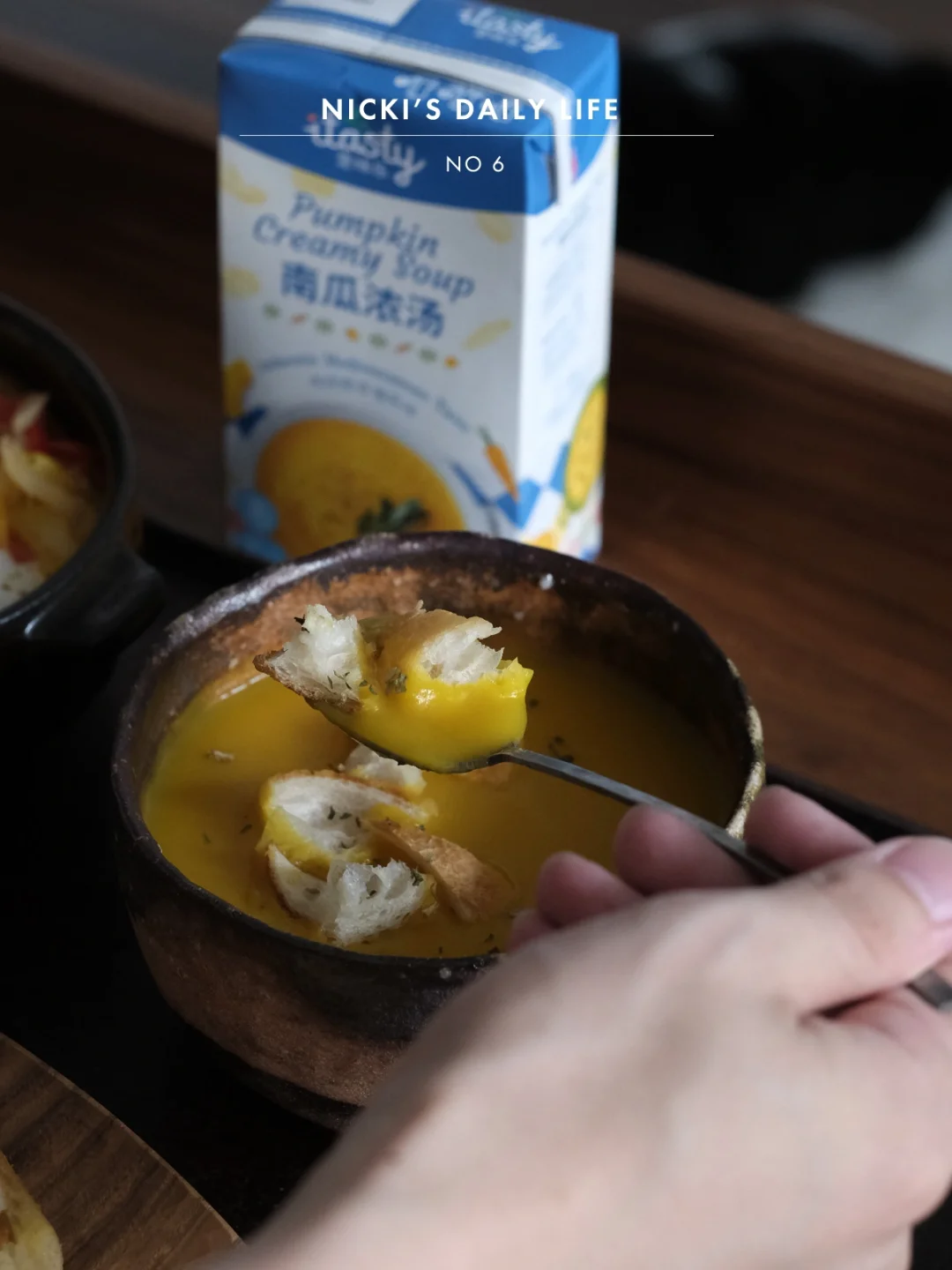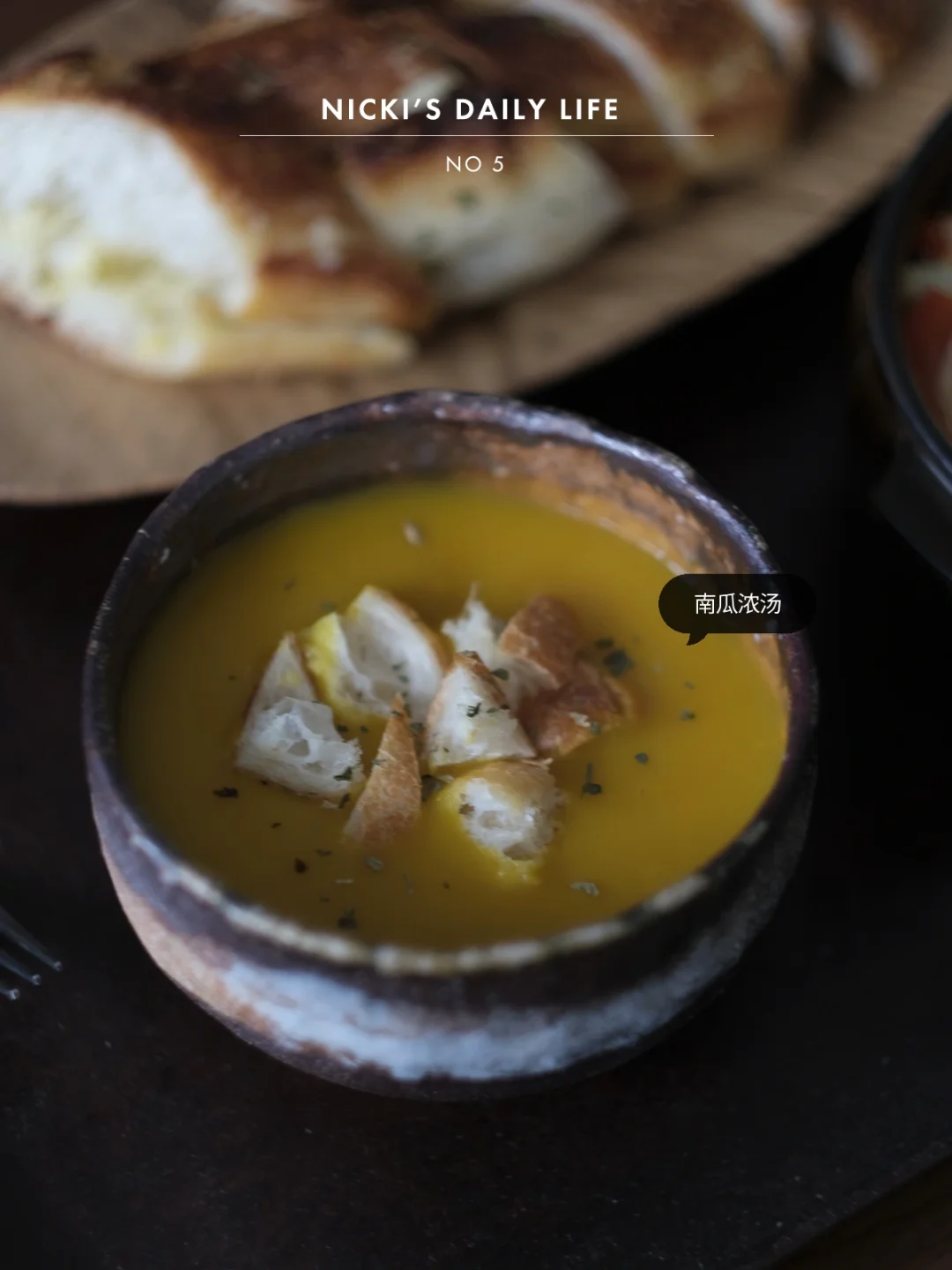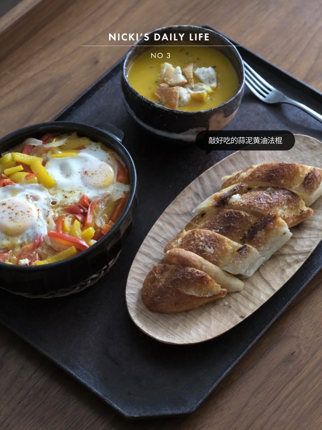 🍜午餐:彩椒蛋+蒜香法棍+意味乐南瓜浓汤