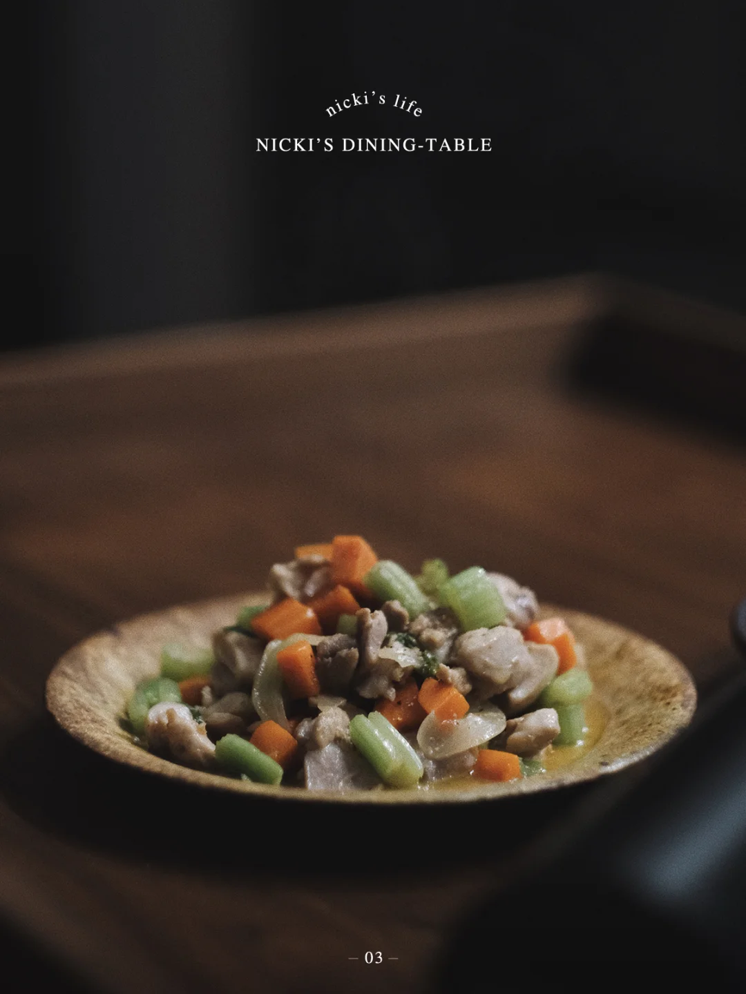 - 西芹胡萝卜炒鸡肉