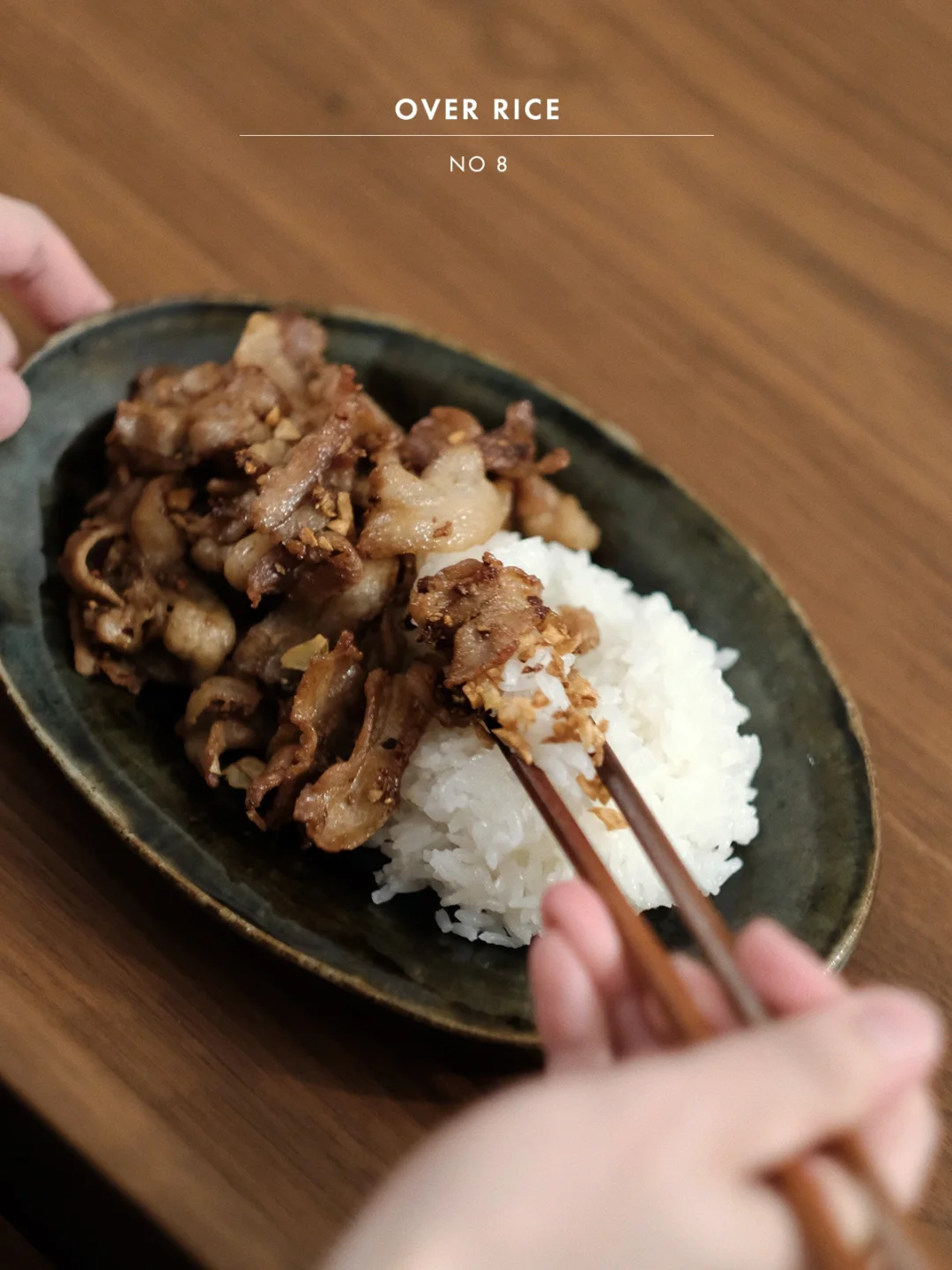 •盛一碗米饭,放上炒好的猪五花,撒上炸过的蒜末即可。