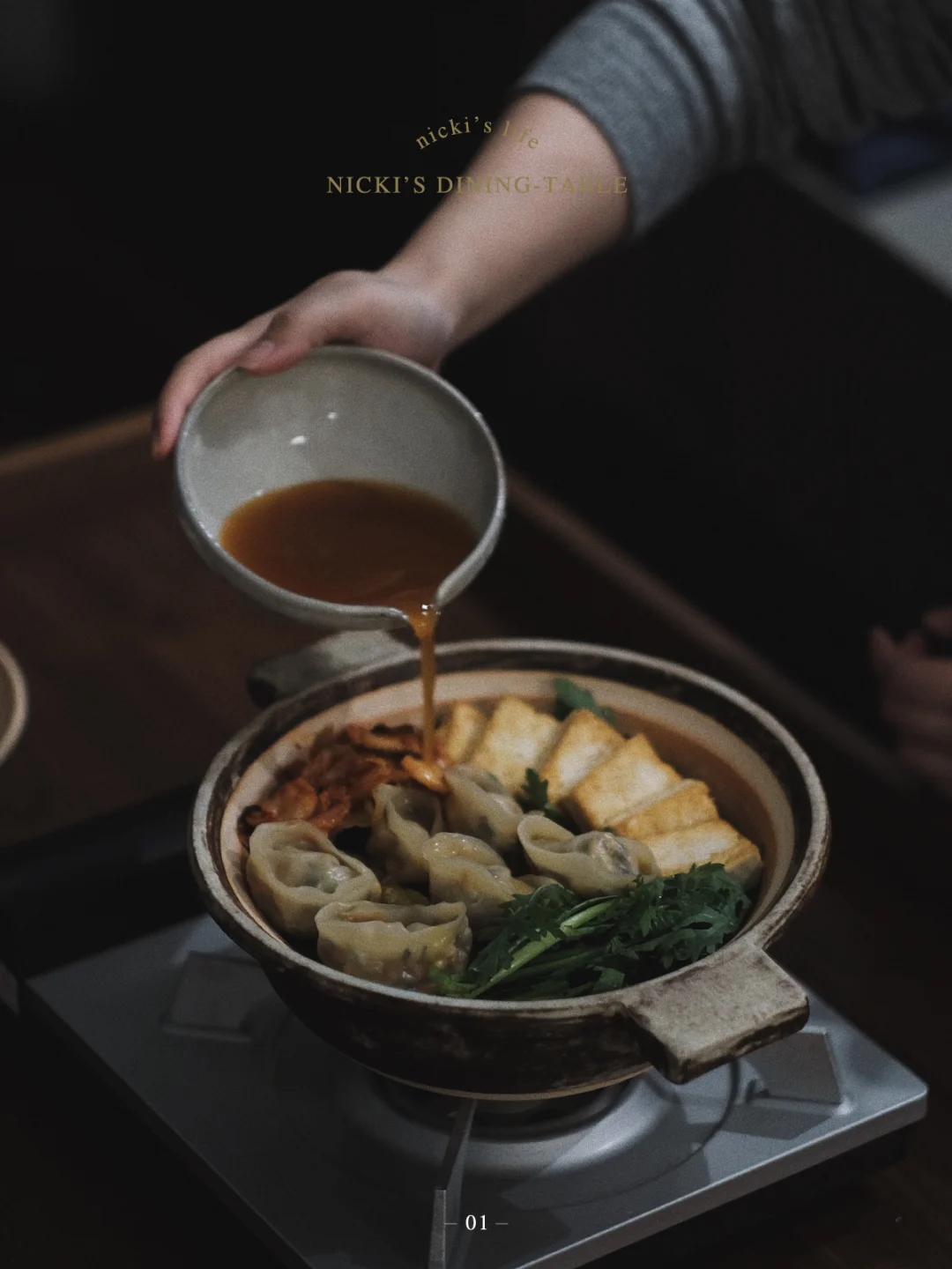 最后一步就是码菜啦,放入自己爱吃的蔬菜,然后倒入高汤,我的汤底是熬的菌菇汤底,再加入了一勺韩国辣酱和些许鲜酱油。