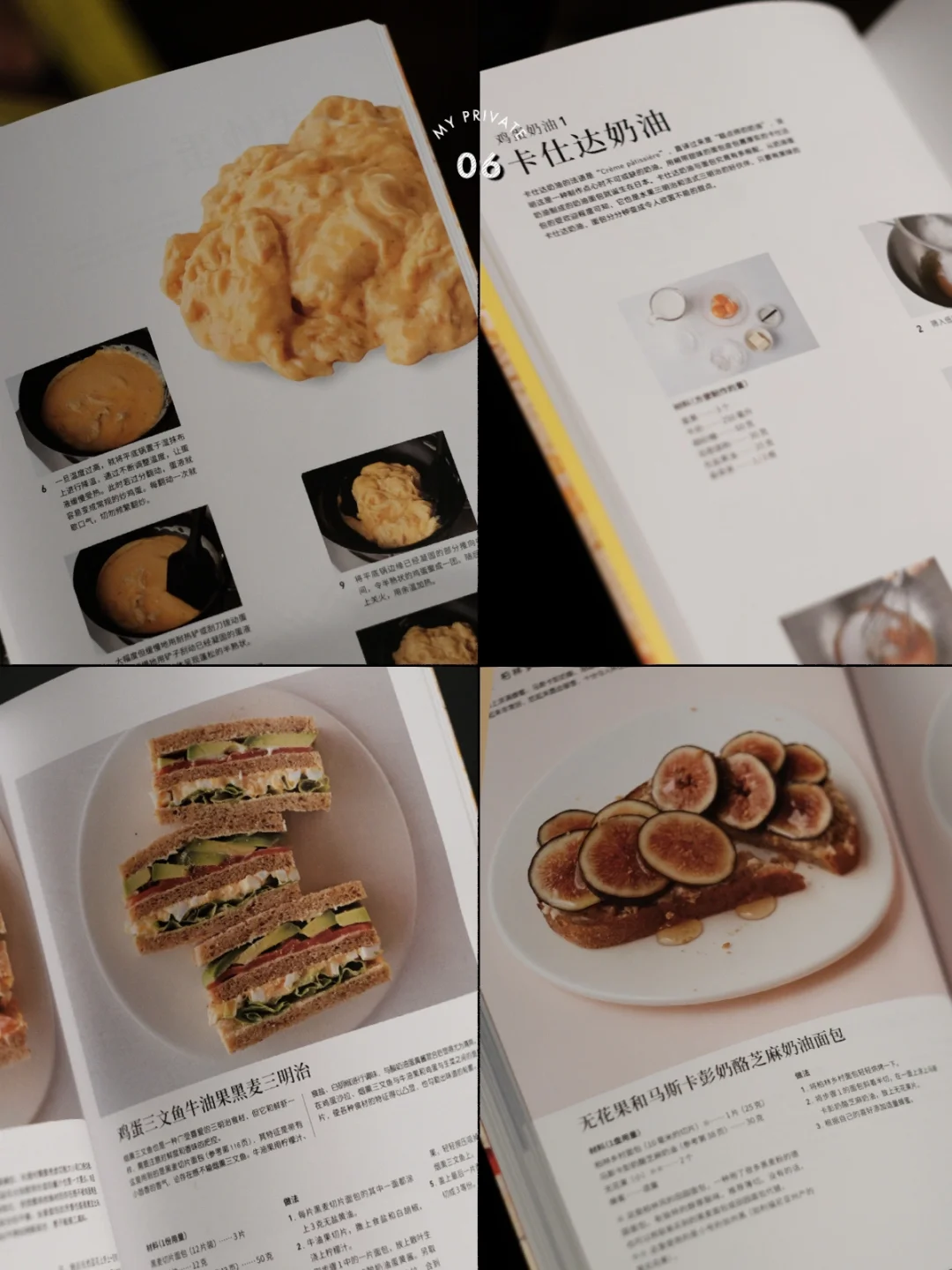 这两本书当时看到书封面的时候,就只以为它里面是关于三明治的制作方法,但是翻开看完后,发现它写的非常详细,鸡蛋的这一本还会写关于鸡蛋的各种不同的做法:西式炒蛋、厚蛋烧、炒蛋….连三明治中的酱料制作都会提及。