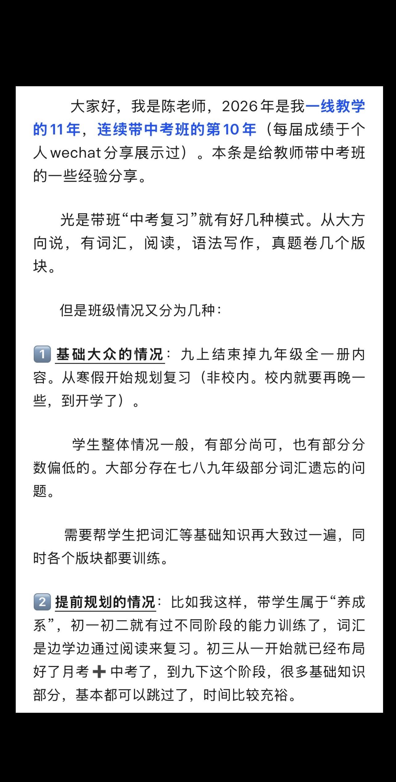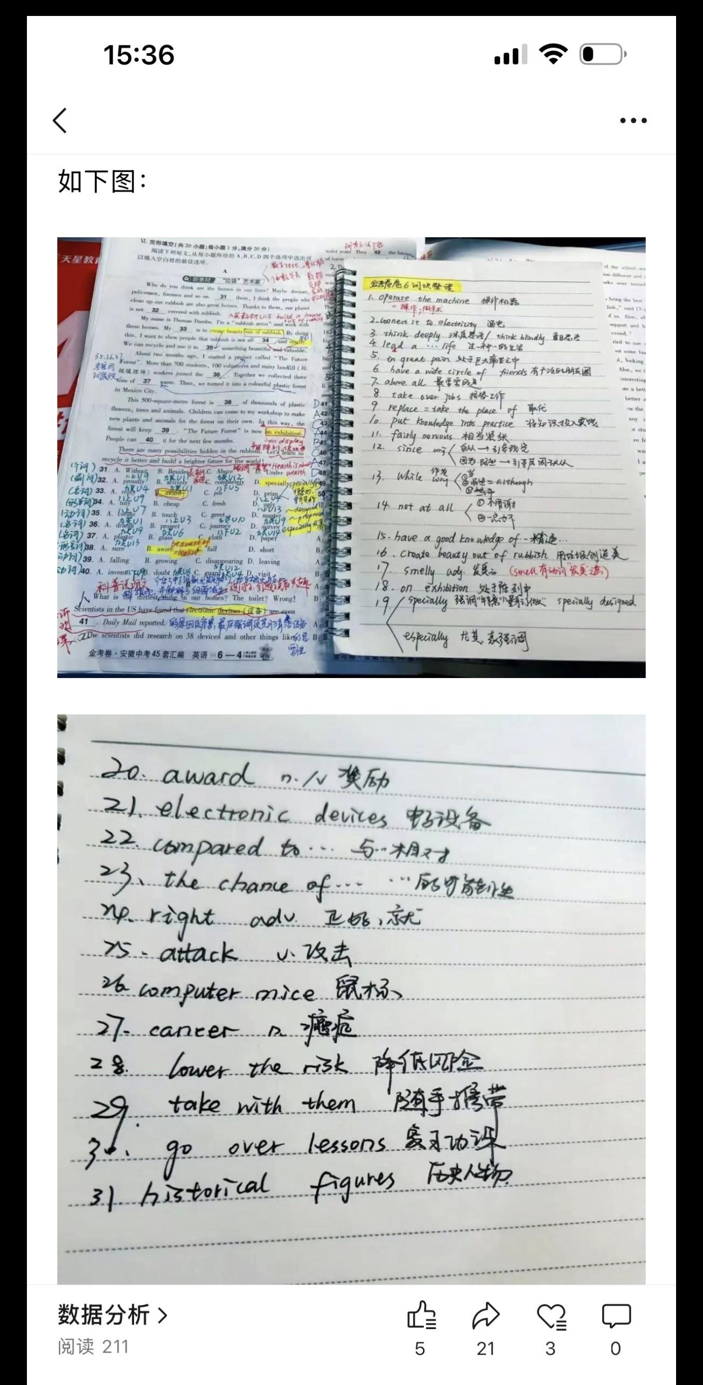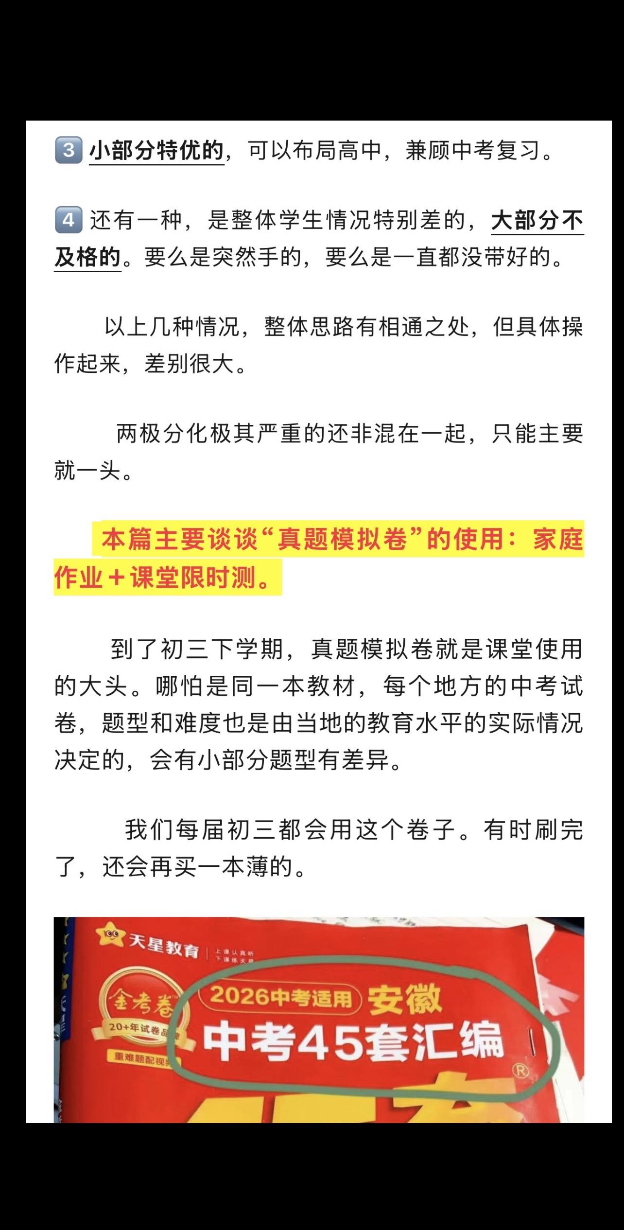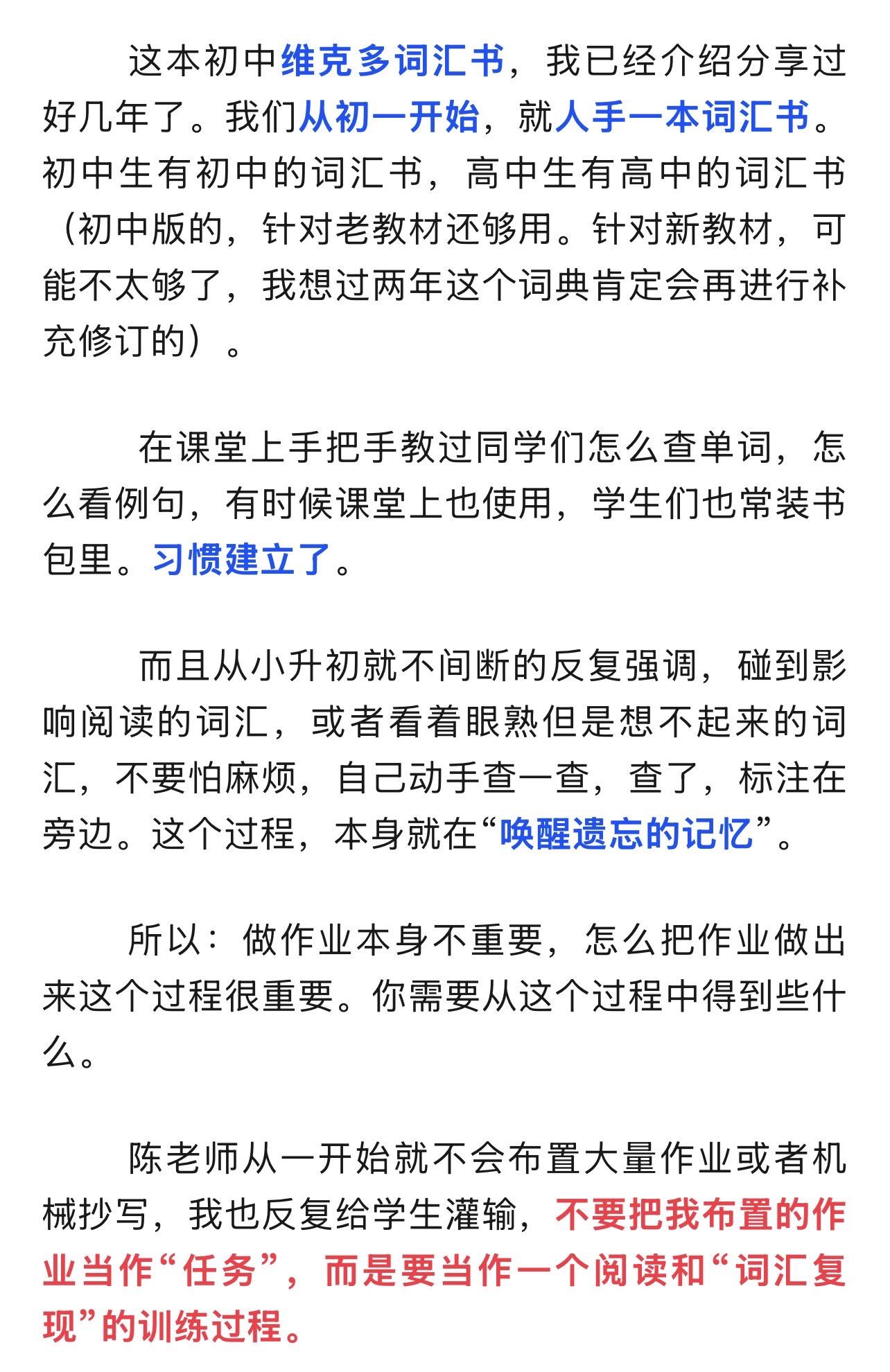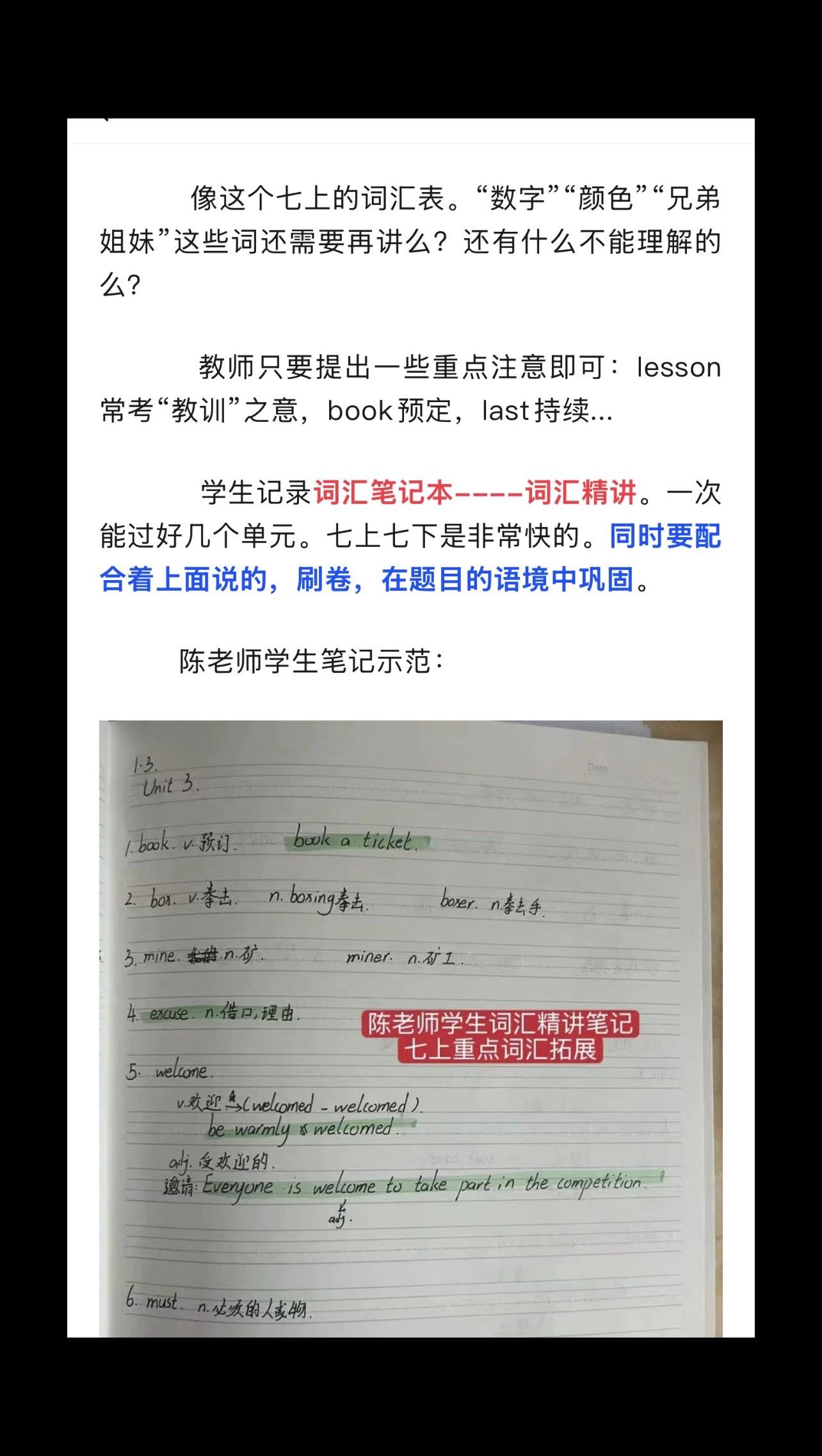 陈老师中考复习专题(1)——模拟卷的使用。26.1.6 陈老师超干货分享——中考复习专题(1) 模拟卷的使用。 模拟卷,一半用来做作业(弄懂题目,本身就是词汇复习的语境),一半用来限时测。 1️⃣如何布置作业? 2️⃣教师的常见中考复习误区——白白浪费时间。 3️⃣如何限时测。 4️⃣试卷题型分类。 5️⃣如何评讲试卷? 6️⃣如何提取词块? 本篇全篇都为免费公益分享。全文较长。完整版见公众号 陈小姐的英语课