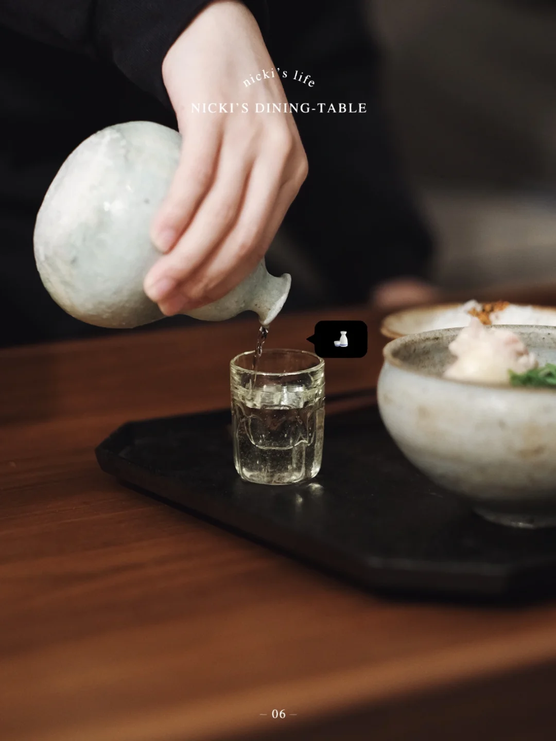 清酒是家里常备的酒,有下酒菜的时候,即便一个人也会来上一小壶,不止是和菜搭,我觉得和热乎乎的锅物也很搭,淡淡的米香,口感清爽,入口顺滑,不会盖住菜的味道。