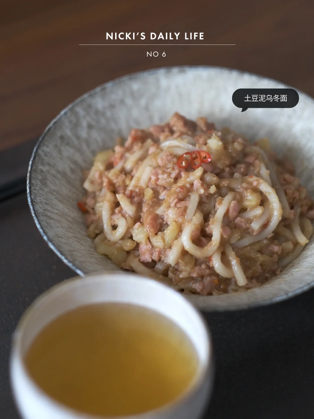🍜午餐:土豆泥炒乌冬+茉莉花茶
