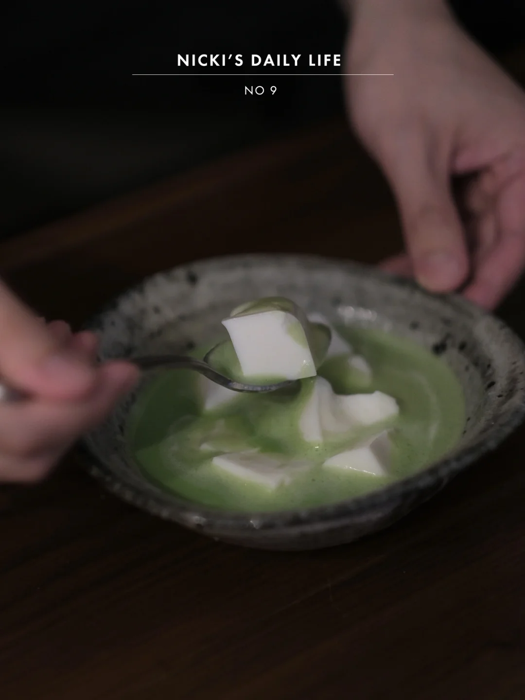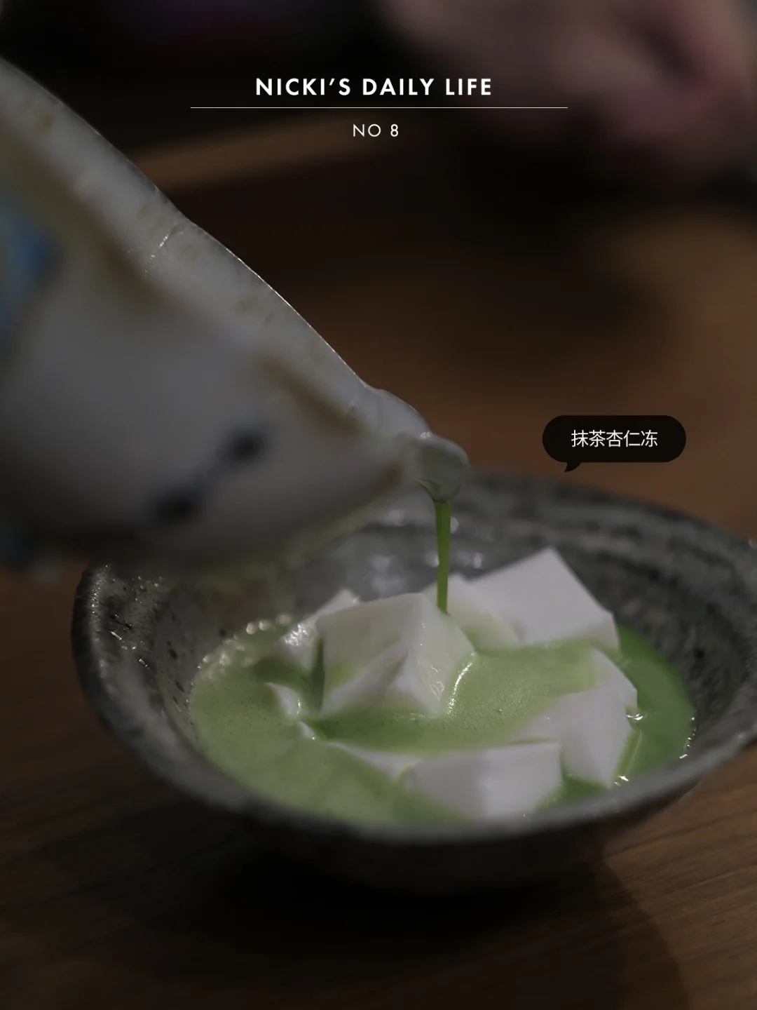 奶冻的做法很简单,一张吉利丁差不多是5g,冷水中泡软,放入杏仁奶中加热融化,过滤一次,倒入容器中,放冰箱冷藏2-3个小时即可。刷了一碗抹茶,倒入杏仁奶冻中,口感不甜,有浓郁的茶香与杏仁香,这样的下午茶吃多了也不会腻。