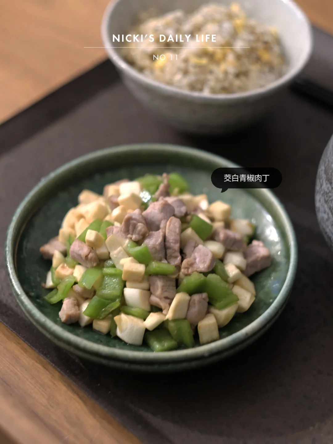 冰箱里还有冻着的猪骨高汤和妈做的鱼丸,晚上刚好和鸡毛菜一起煮一个汤,这一番操作让我想到了《拜托了冰箱》,有啥煮啥也是一种门道。最近的茭白大家都吃了吗?爽脆多汁,简单和肉丝或肉丁炒一下就足够美味,就这样一天在咸甜中慢慢咀嚼度过,冰箱库存已清,又可以去逛超市啦!