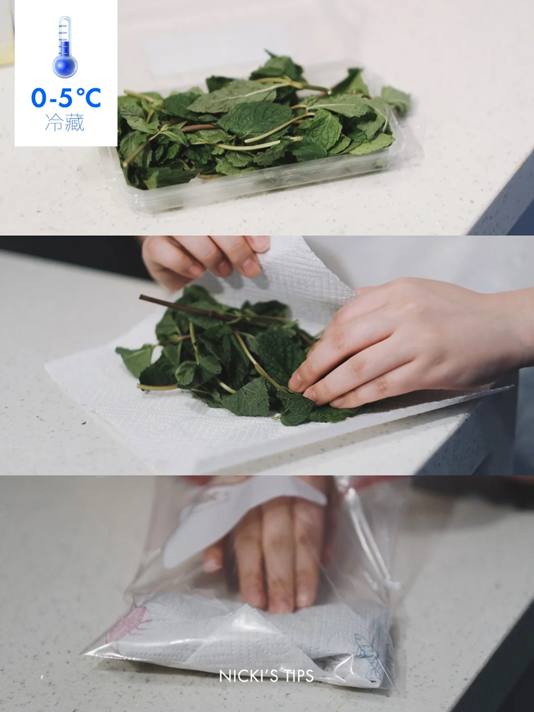 方法:用厨房纸巾包好➡️装进塑封袋➡️放进冷藏室