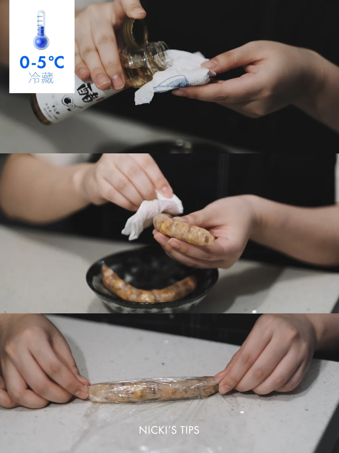 方法:用厨房用纸沾取一些醋或者清酒擦拭肉表面➡️放在冷藏室