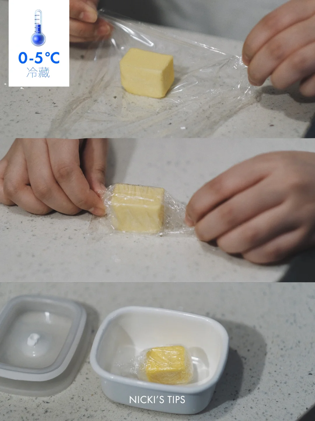 方法:用保鲜膜或者铝箔纸包紧➡️放进密封盒中➡️放进冷藏室
