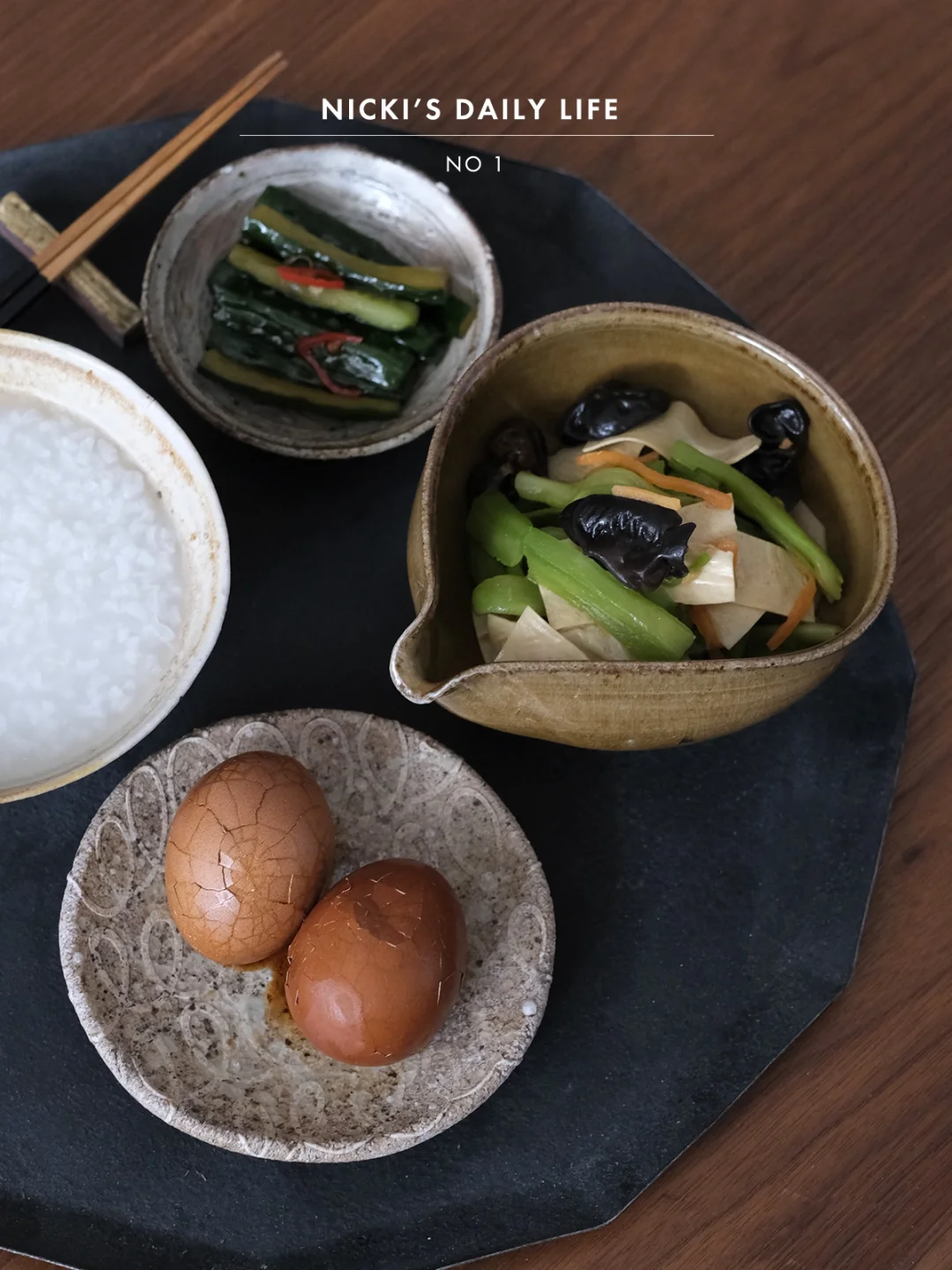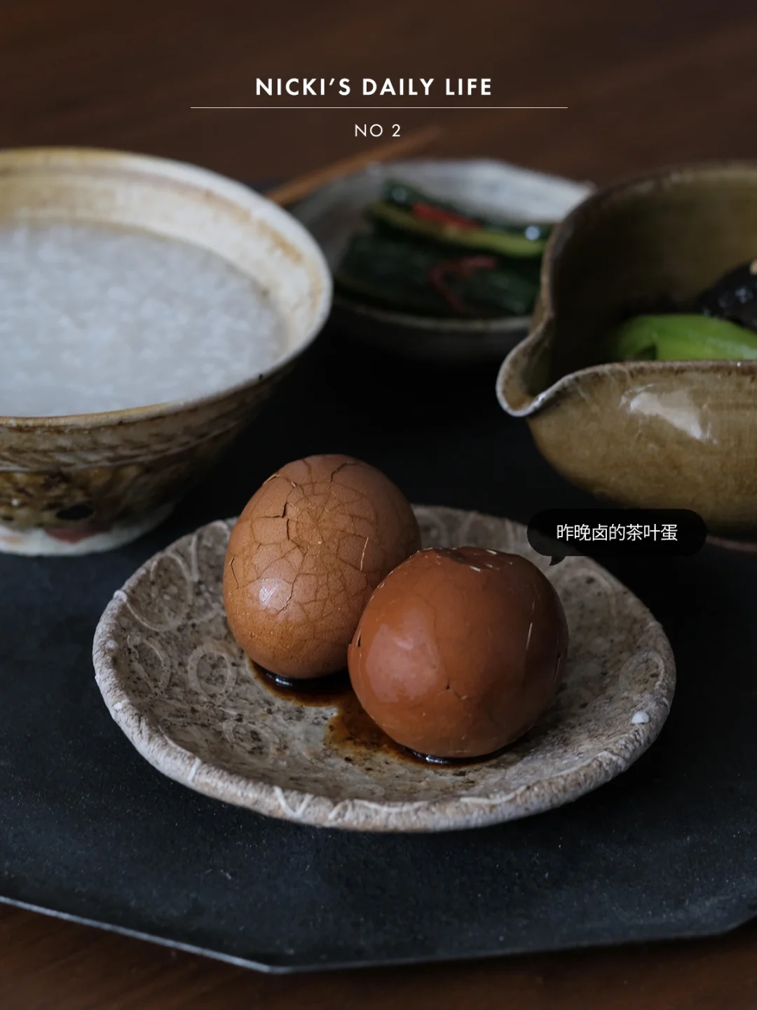 两泡被遗忘的正山小种泡茶已经没法喝了,把它们塞进了泡袋里卤一小锅茶叶蛋还是不错的。茶叶蛋的制作很方便,把鸡蛋先煮熟捞出放冷水中泡一会,用勺子轻轻把鸡蛋壳敲碎,卤出来的鸡蛋是否有“蜘蛛网”纹就取决于敲的好看与否了。鸡蛋+2碗水+加入1大勺老抽+3勺生抽+香料,小火煮15分钟,关火焖上一个晚上,早上稍微加热一下配上白粥小菜,可滋味。