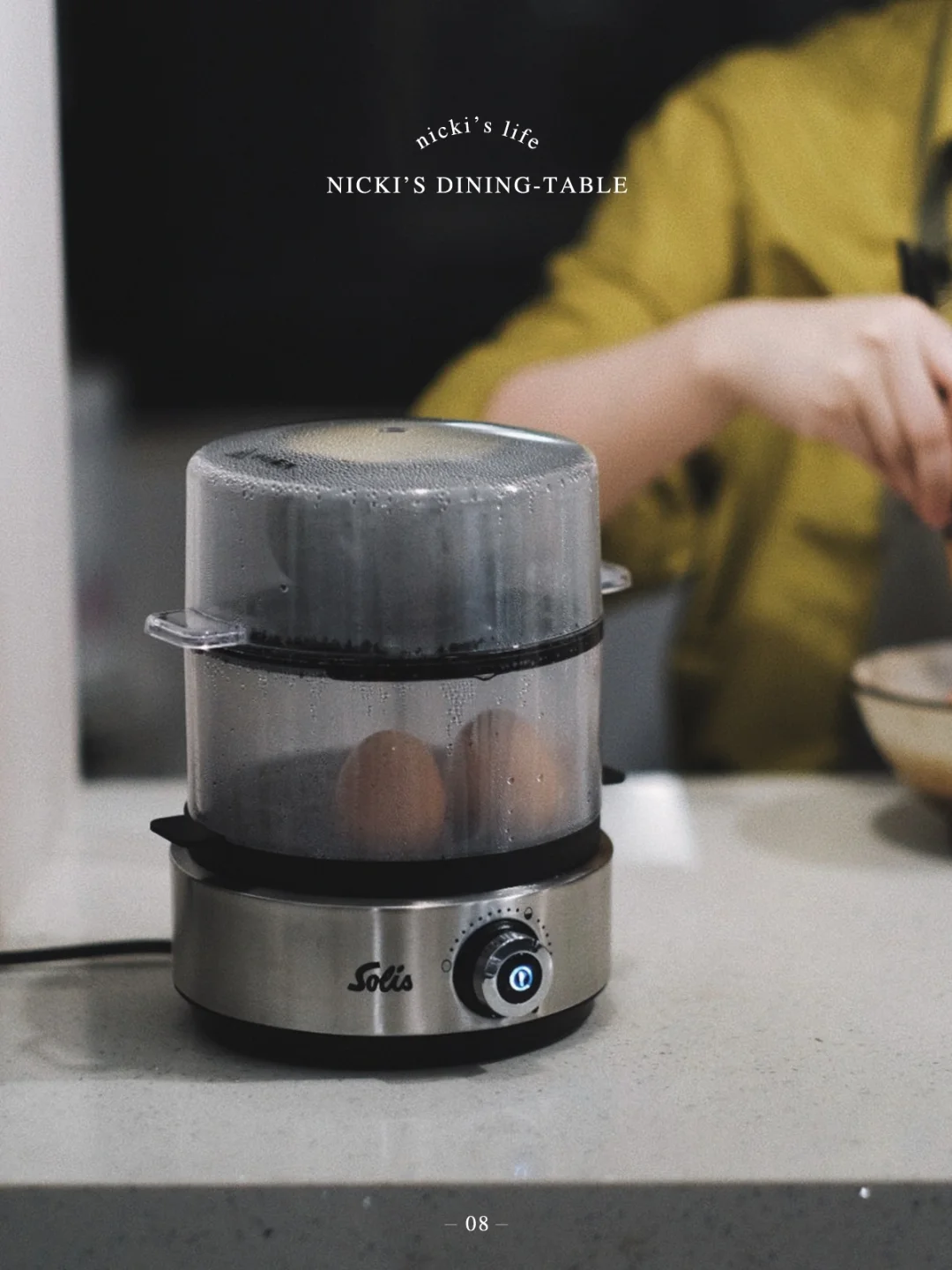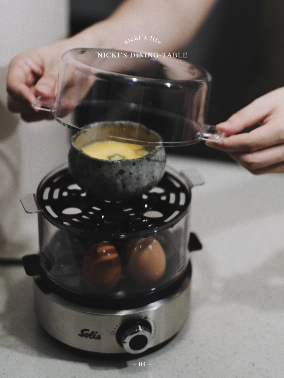 为了确保今天这个菜不失误,我用了索利斯的双层煮蛋器,它可以很好的控制鸡蛋的熟成程度,不论是溏心蛋、熟成蛋还是嫩滑蛋,调到自己想要的档次,时间一到自动断电。再做溏心蛋的同时,上层还能做个茶碗蒸,时间一点也不浪费。