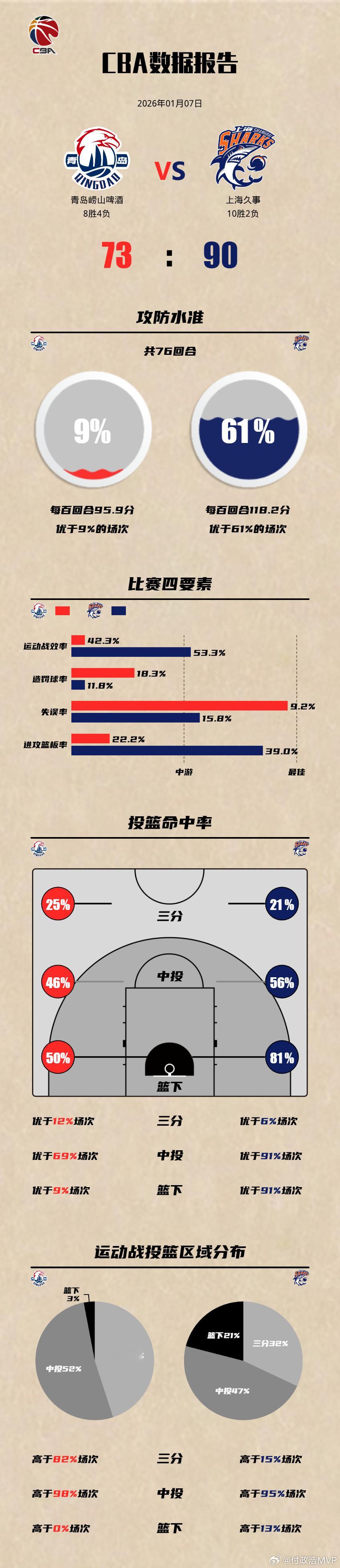 凭借一波八连胜,上海男篮已暂时升至CBA战绩榜榜首。今晚王哲林聊发少年狂,出战23分钟,11投10中砍下21分8篮板3助攻2盖帽,如此高效的王哲林暌违久矣。青岛男篮由于米奇缺阵,内线只能靠纪卓强撑,再加之青岛男篮的外线投射不佳,首节仅得8分,而上海男篮内外开花,首节狂轰33分。在40分钟的赛制下,首节落后25分让人确实有种深深的无力感。好在青岛男篮没有放弃,一路苦苦追赶,努力缩小分差,精神面貌可嘉。上海男篮八连胜