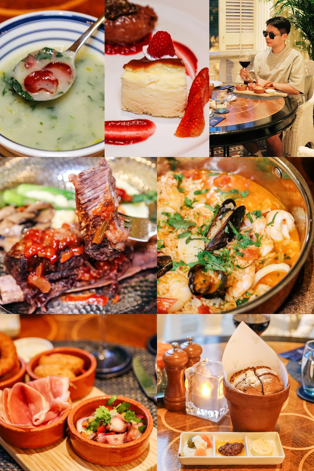 🍰甜品环节,葡式甜品拼盘不容错过。朱古力榛子慕斯丝滑浓郁,甜而不腻;巴斯克芝士蛋糕有着诱人的流心质感,经典的葡挞配红莓果酱及新鲜士多啤梨,酥皮香脆,内馅嫩滑。