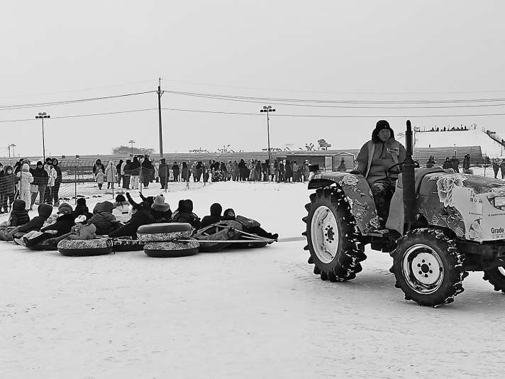 2025年12月28日,记者在沈阳稻梦小镇·冰雪大世界,看到一位工作人员驾驶着拖拉机拖拽着坐满游客的轮胎在雪地上转了一圈又一圈,更多的游客在场地外排起长队等候入场。在游客轮换上下的间隙,工作人员对记者说,他是当地的农民,春夏秋3季开拖拉机在小镇里干农活,冬季旅游季更闲不着,根本没时间“猫冬”。