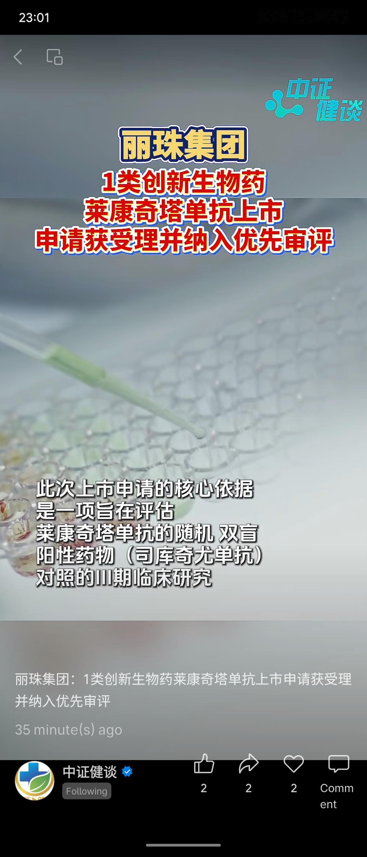 丽珠集团研发的1类创新生物药莱康奇塔单抗,用于治疗中重度斑块状银屑病,其新药上市