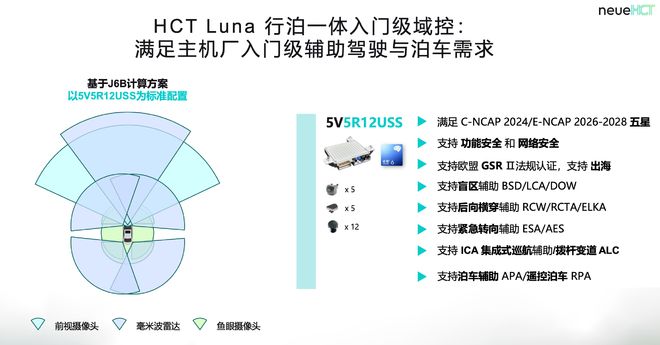 皓月(HCTLuna)则是一个高性能ADAS方案,覆盖L2至L2++级别功能,包括高速领航辅助(NOA)及泊车辅助等,是在提供完整L2功能的基础上的性价比选择。