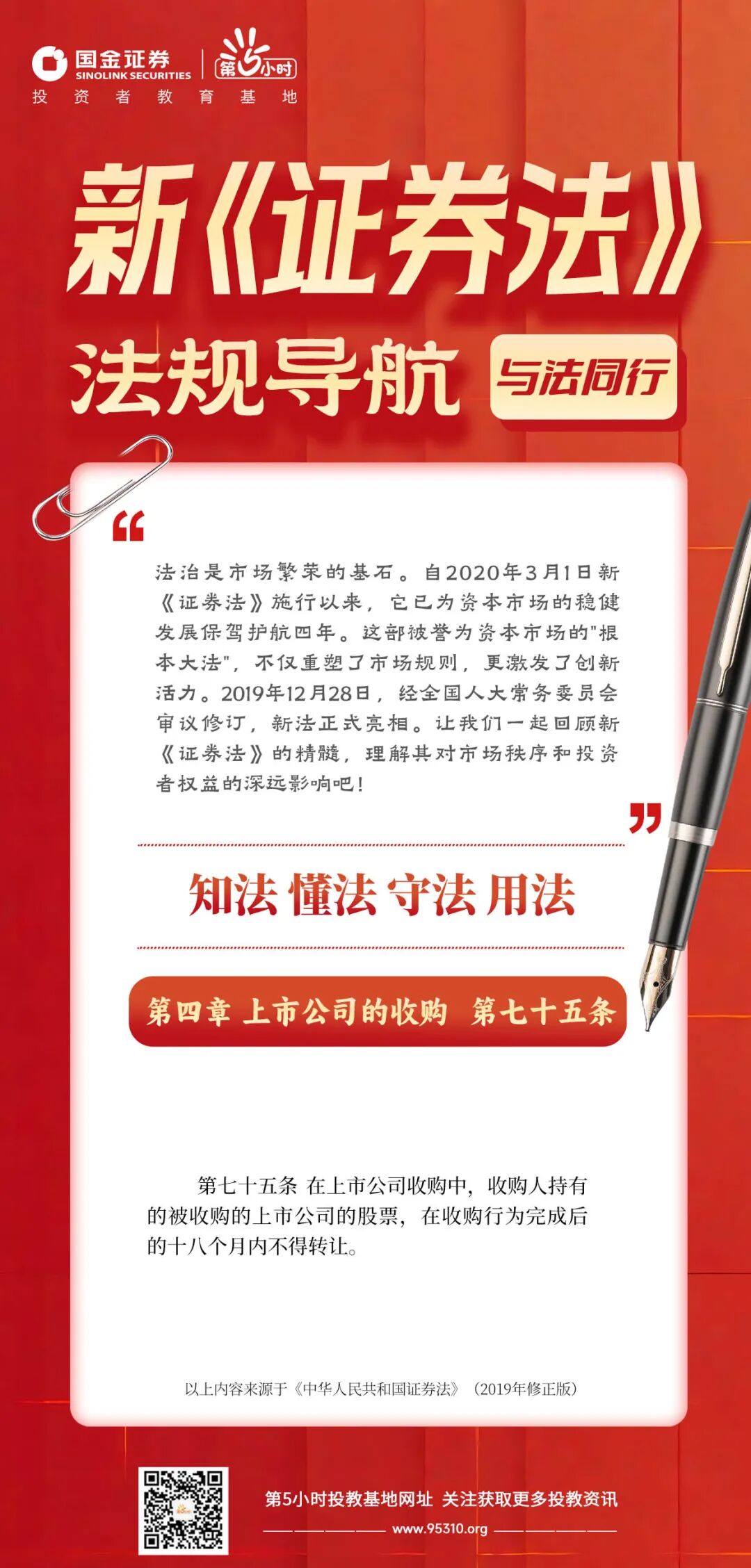 与法同行∣新《证券法》法规导航-第四章上市公司的收购-第七十五条
