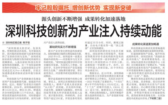 科技创新与产业创新融合发展是深圳产业加速新陈代谢、能级跃升的密码。近日,根据广东省统计局最终核算结果,2024年,深圳基础研究经费115.91亿元,增长21.2%,增速高出全市研发经费11.5个百分点。通过增加高质量的科技供给,同时搭建好联通实验室与市场的桥梁,深圳为新兴产业注入澎湃动能。