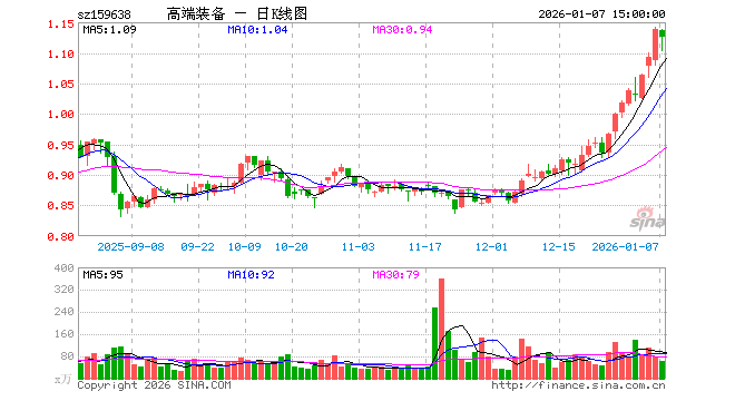 1月7日,高端装备ETF(159638)跌1.23%,成交额7178.88万元。当日份额增加3500.00万份,最新份额为20.13亿份,近20个交易日份额增加4000.00万份。最新资产净值计算值为22.65亿元。